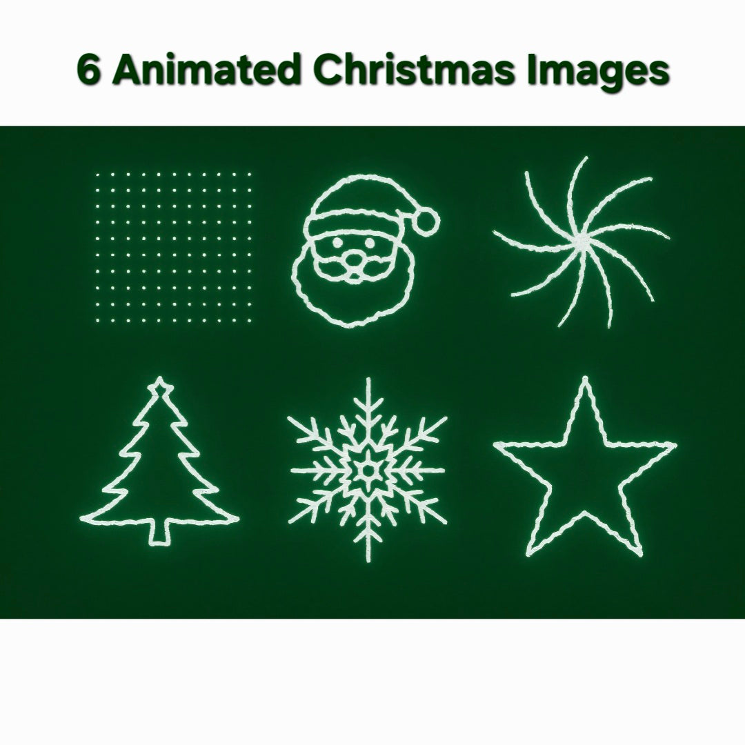 Indoor holographic laser projector with different Christmas animations and images. Adjustable speeds and flashes. Includes a microph...