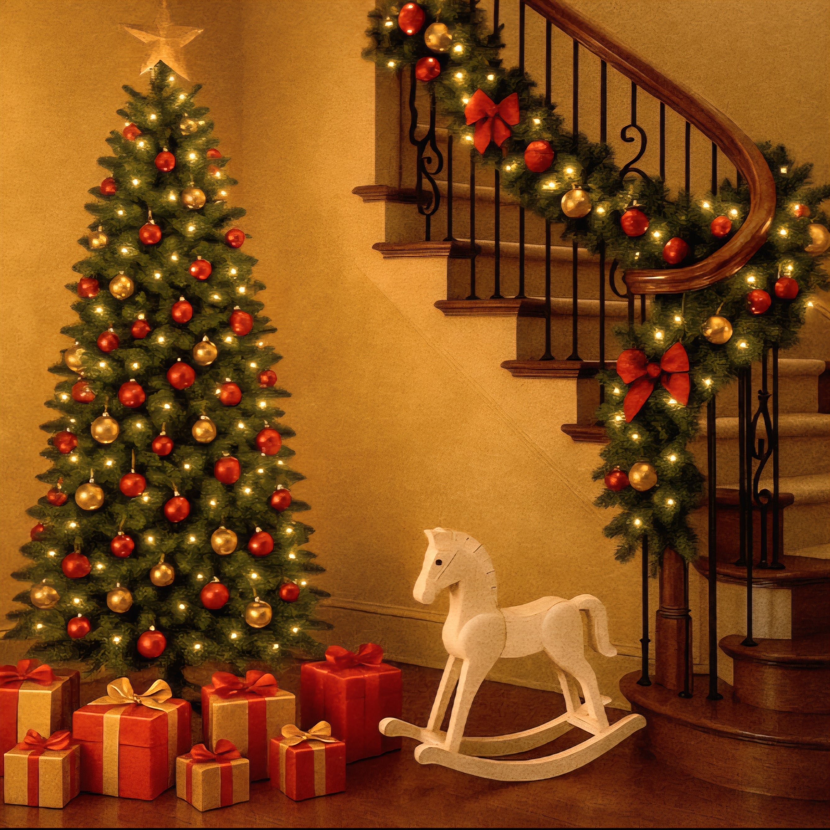 Warm White LED Lights included. 1096 tips. Ornaments not included.