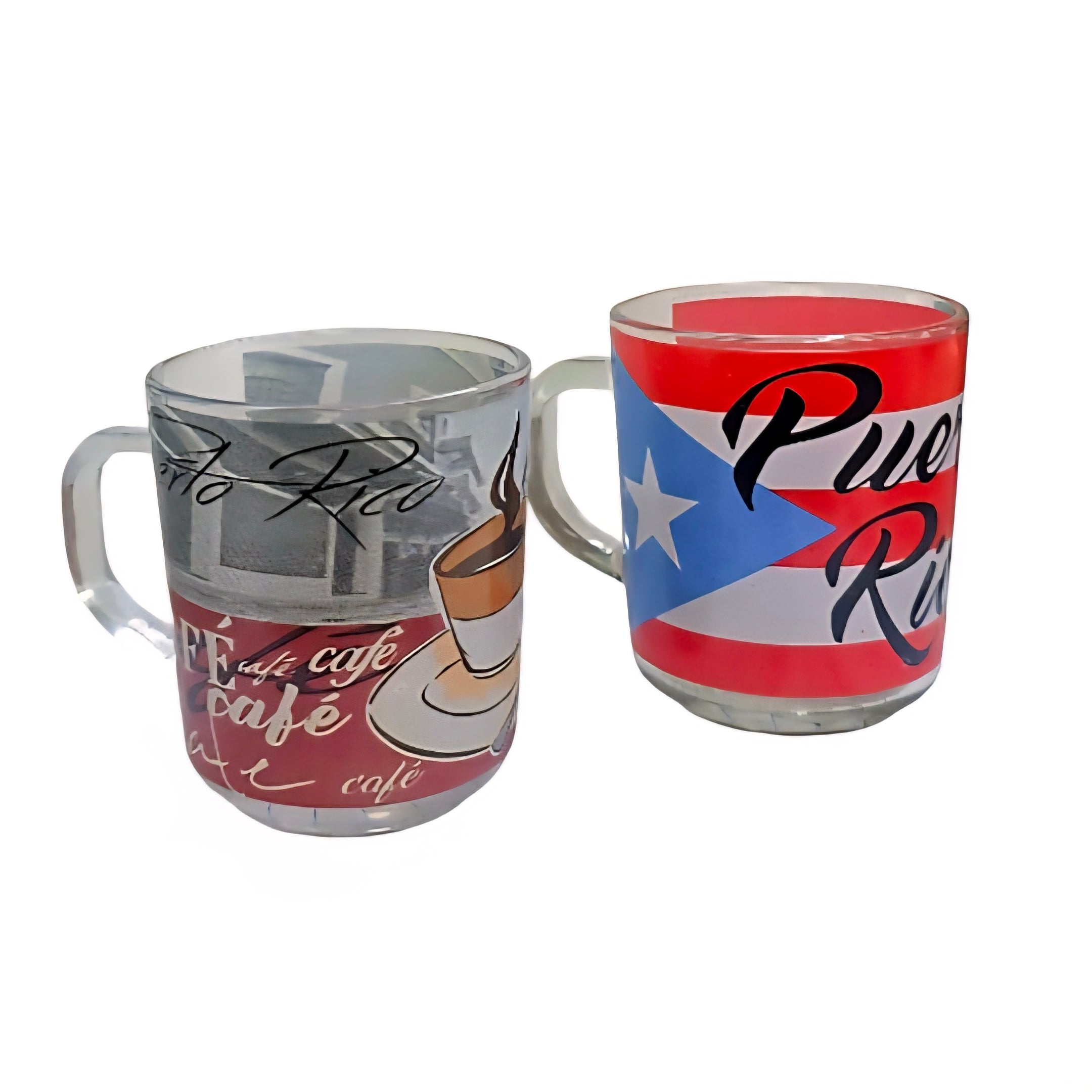 Show your Puerto Rican pride with these beautiful Puerto Rico glass mugs, one featuring a "Café' print, and the other with the Puert...