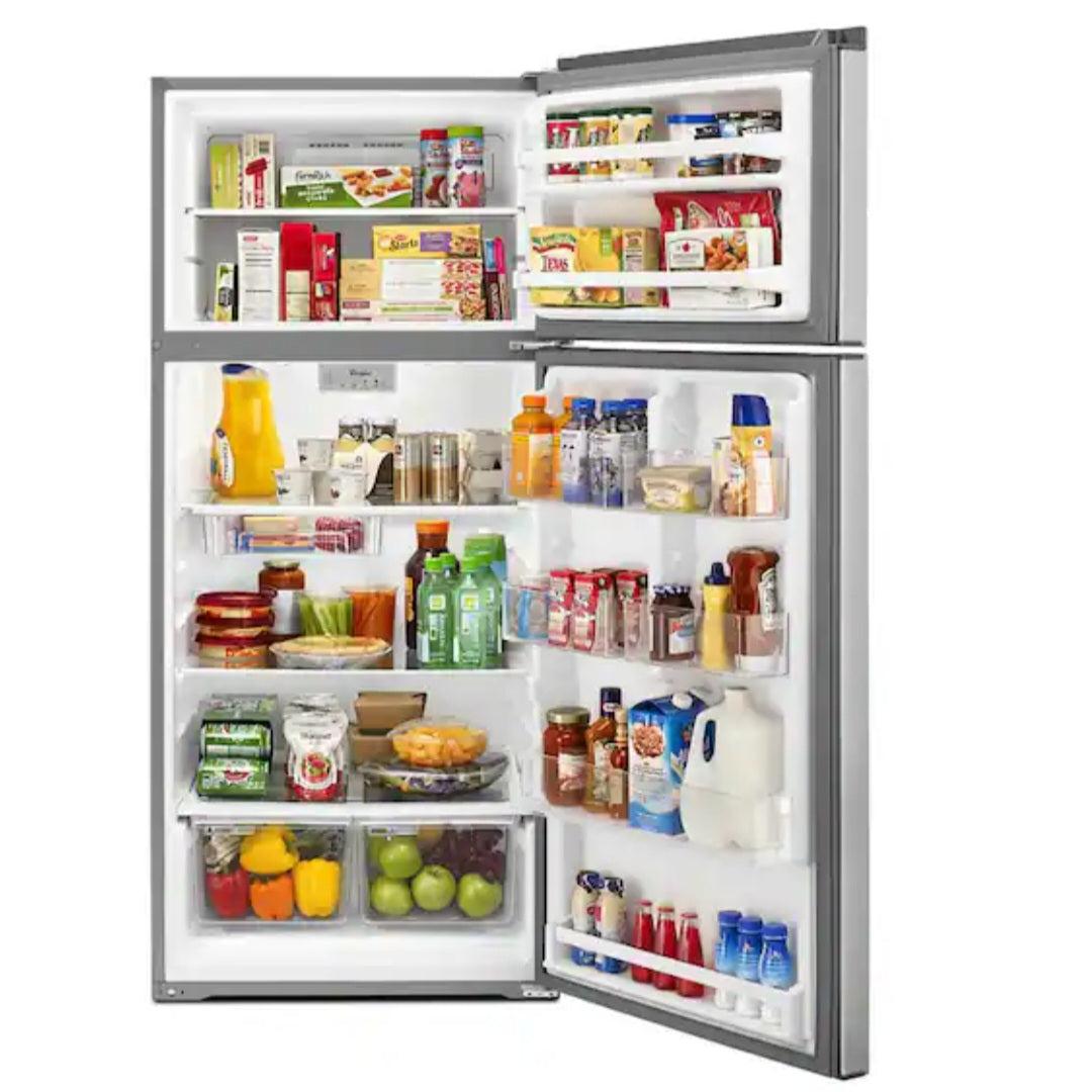 Whirlpool, Nevera con Freezer Superior de 18 Pies Cub. en Acero Inoxidable