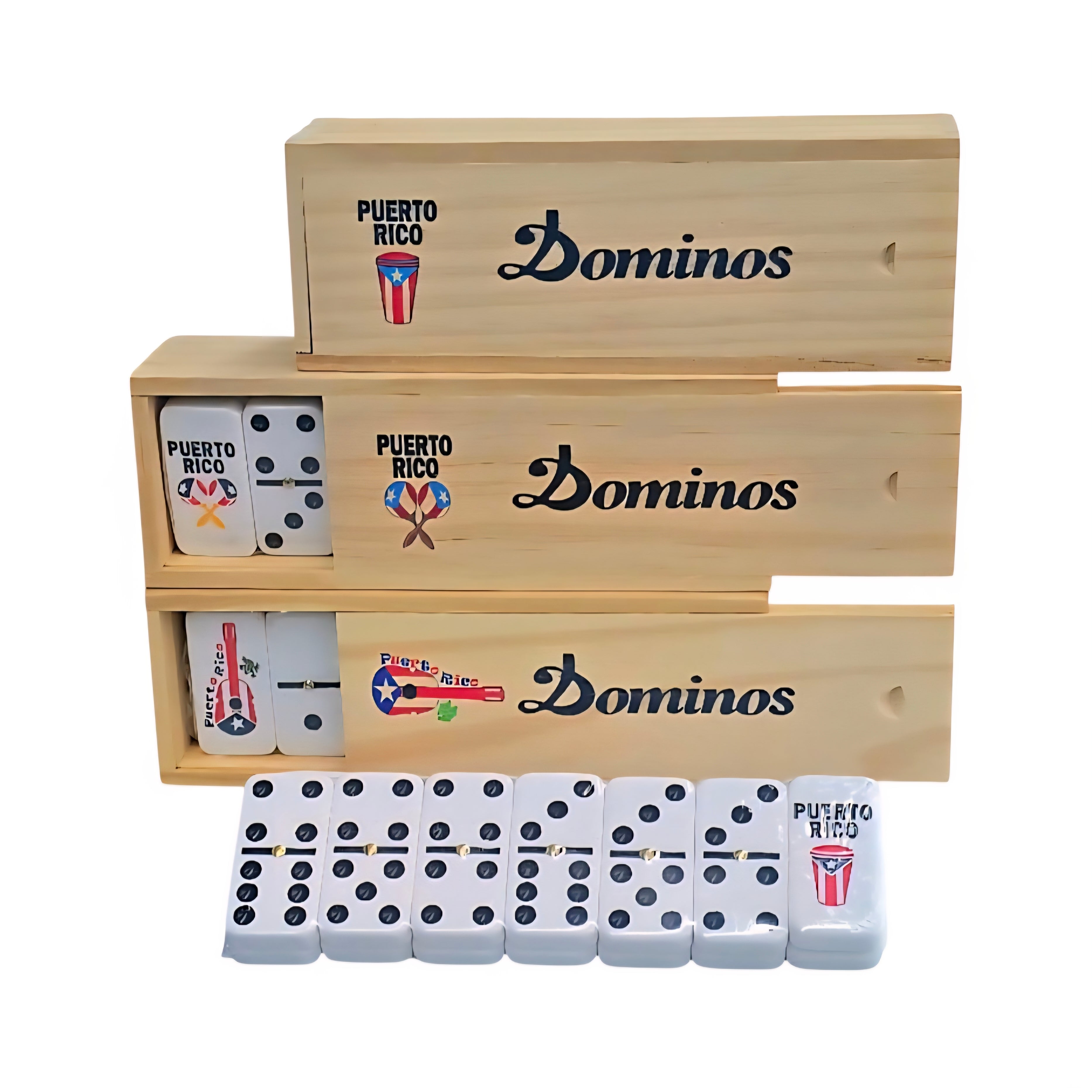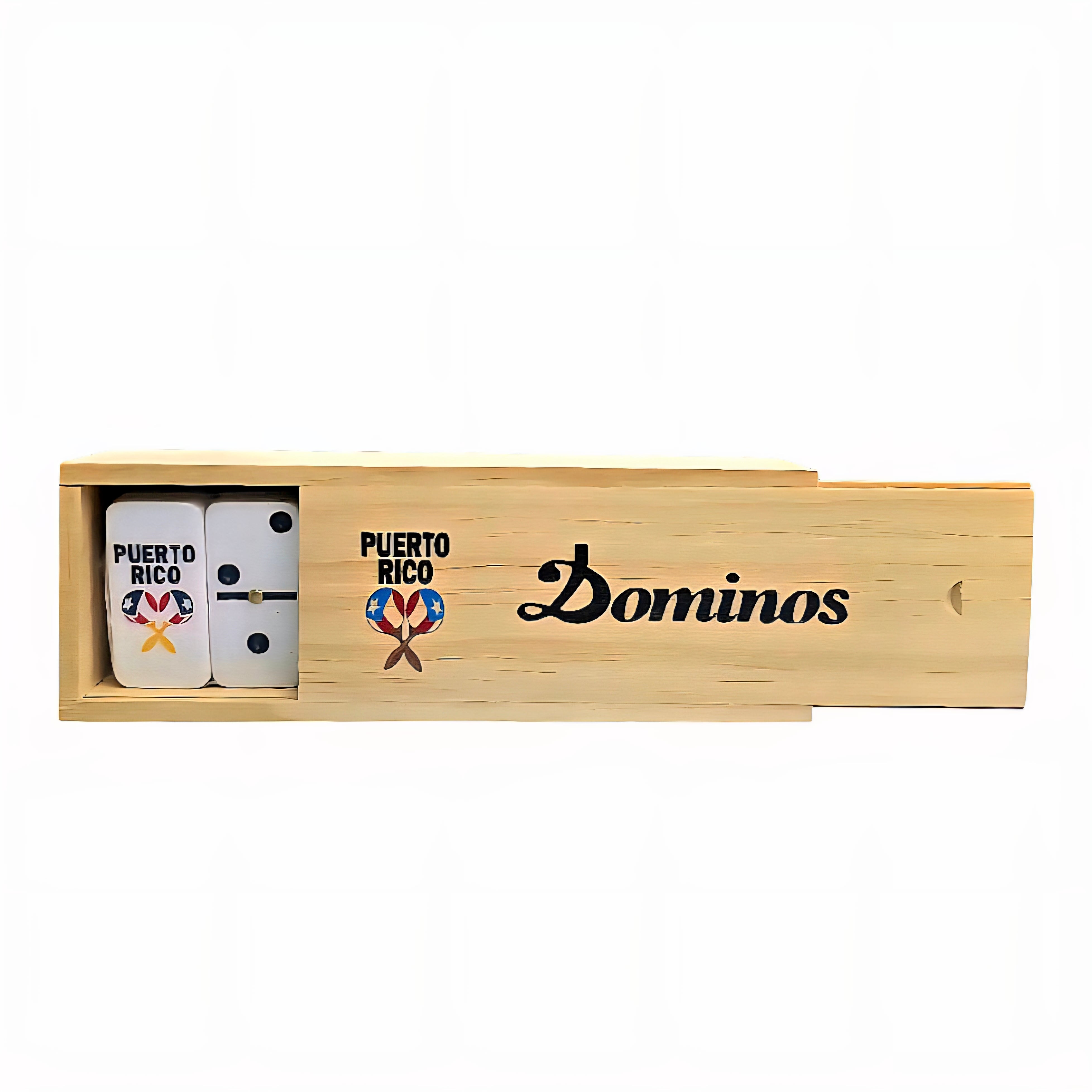 Set de Dóminos en Caja de Madera - Diseños al Relieve de Puerto Rico