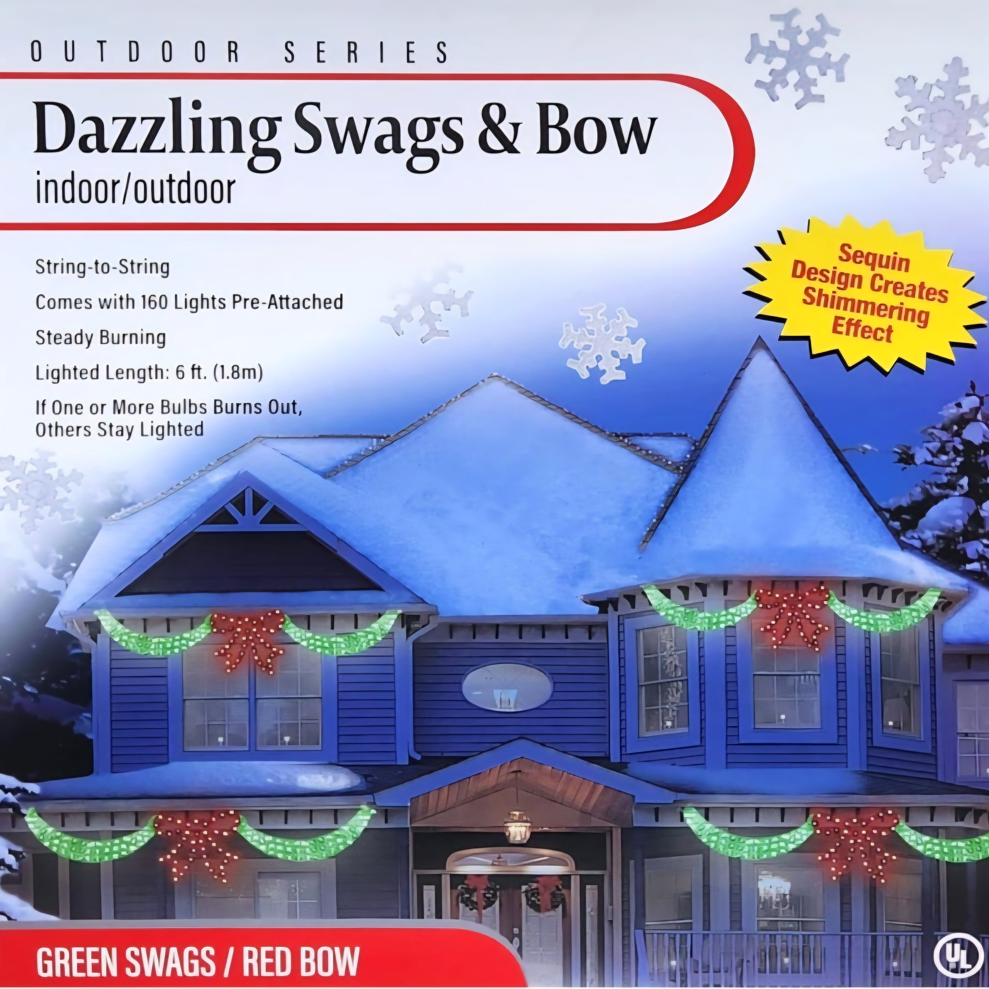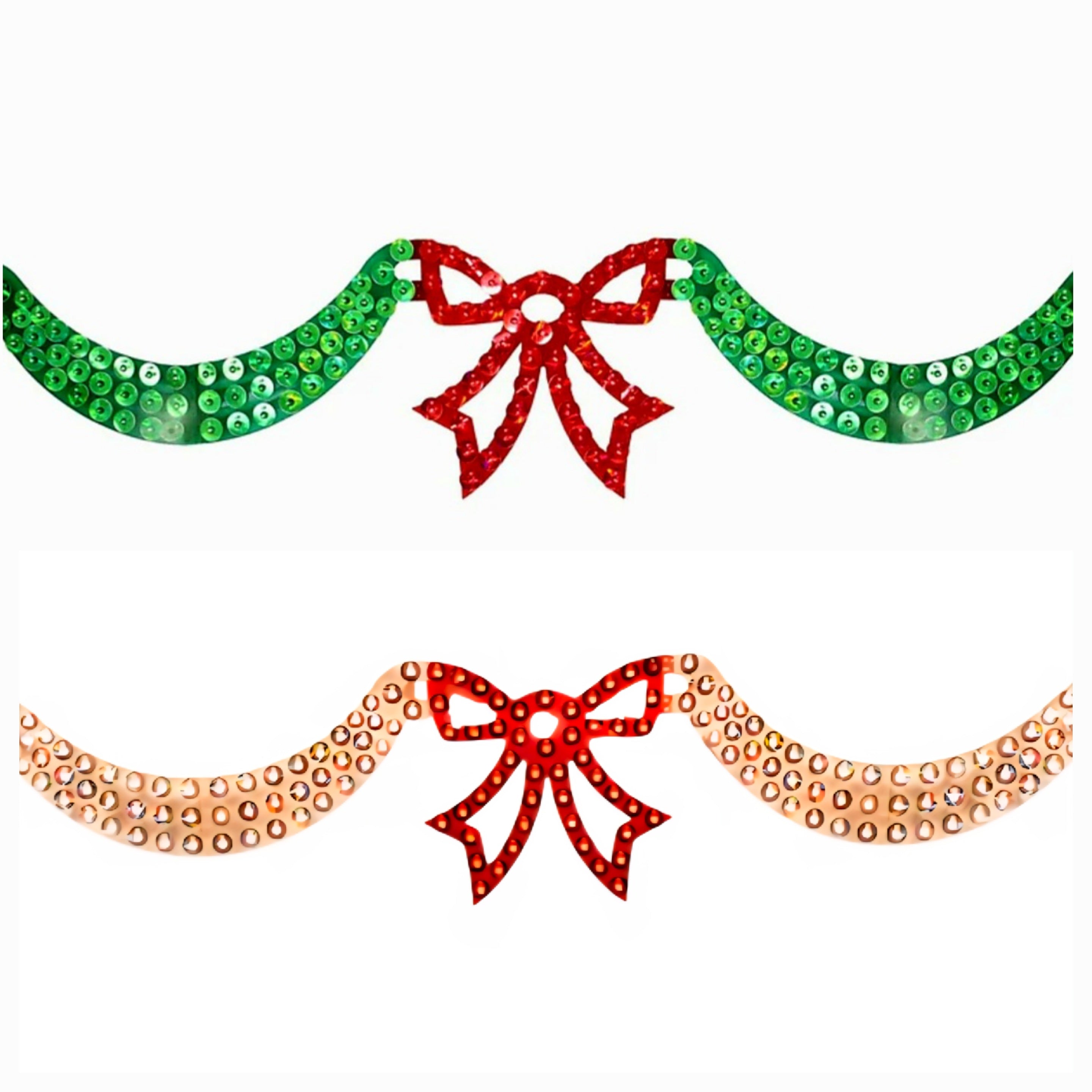 Un adorno navideño que realzará la belleza de tu hogar estas fiestas, con colores únicos:Guirnaldas deslumbrantes con lazo rojo y lu...