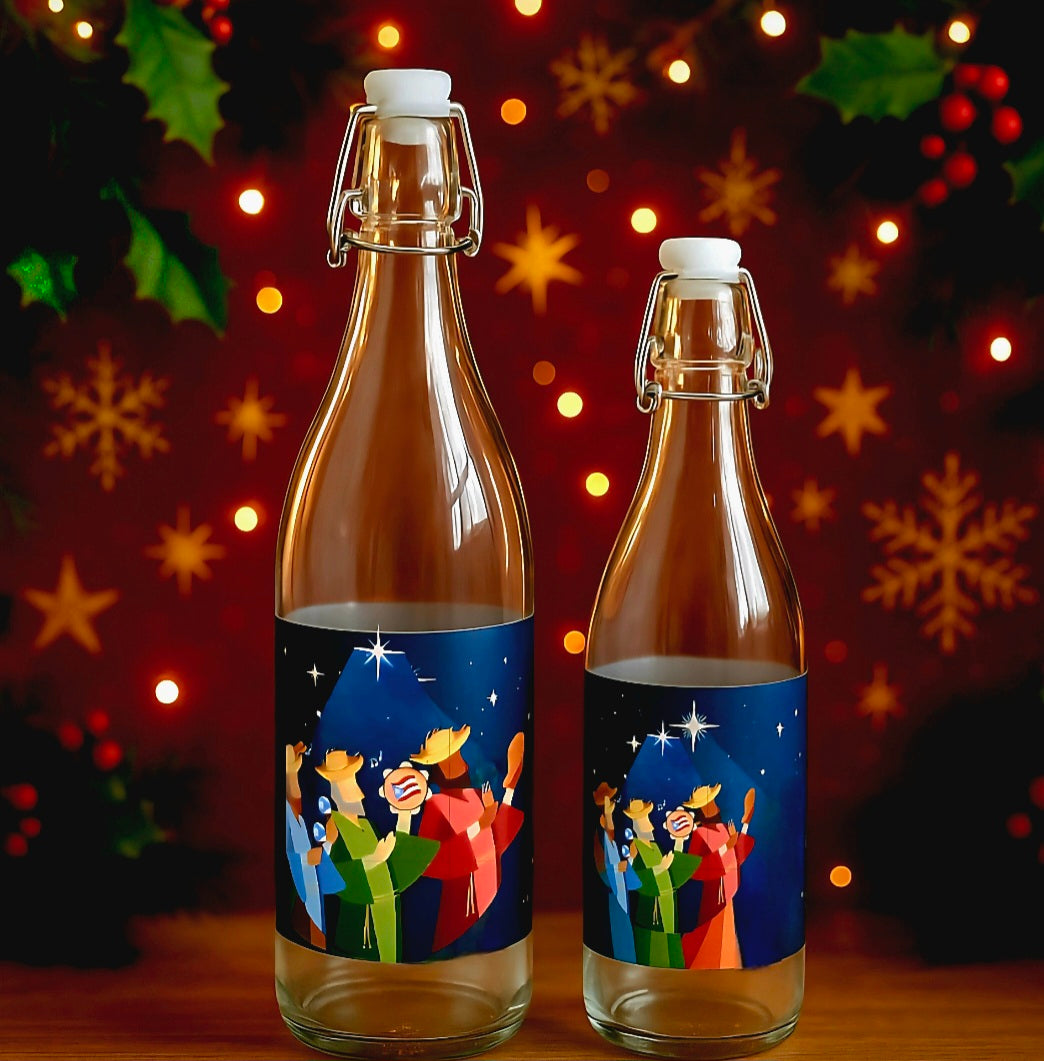 ¡Este diseño personalizado de La Parranda de los Reyes lo hace un gran regalo! Botellas de vidrio diseñadas especialmente para los a...