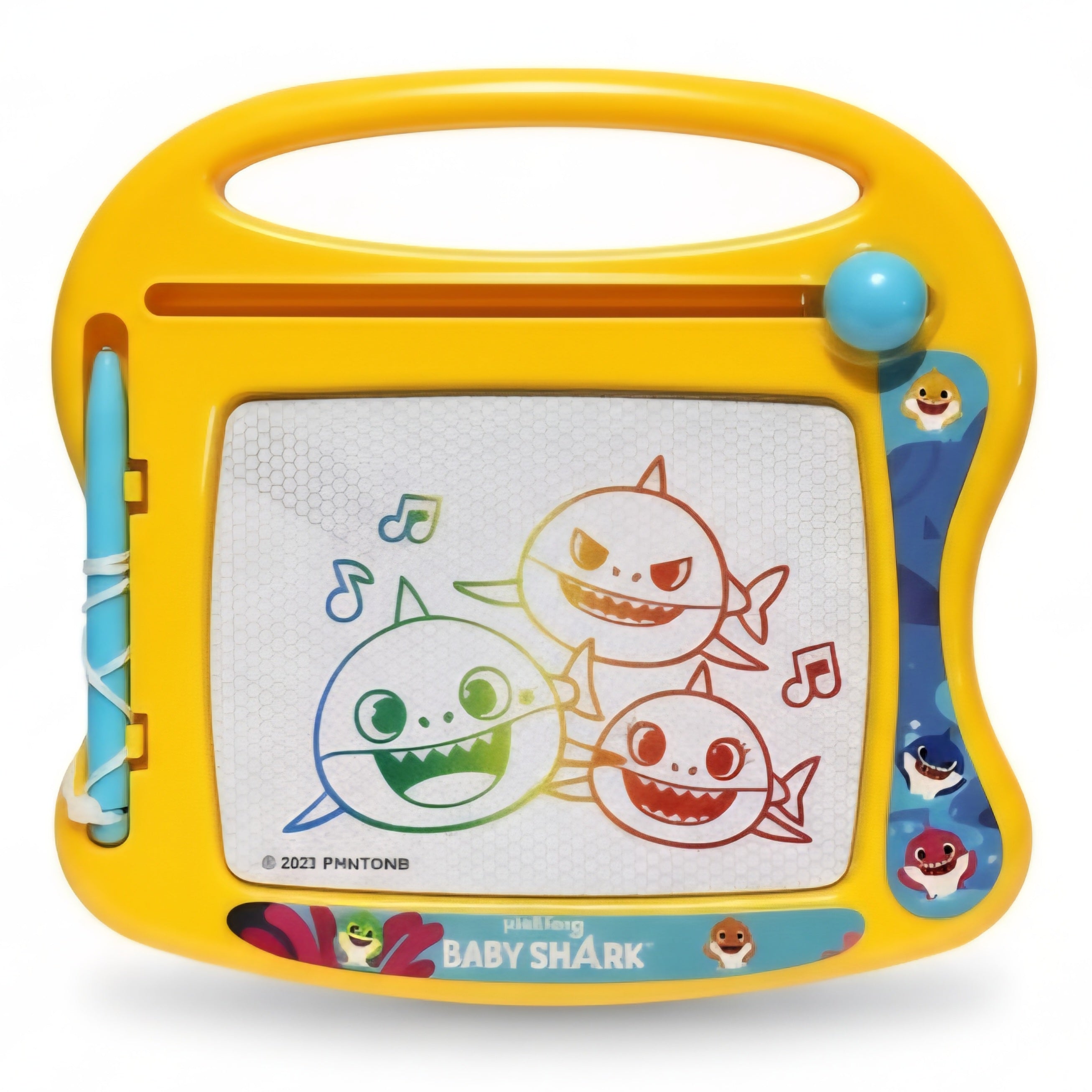 La pizarra magnética cuenta con una perilla mecánica que los niños pueden deslizar hacia un lado para borrar sus dibujos, garabatos ...
