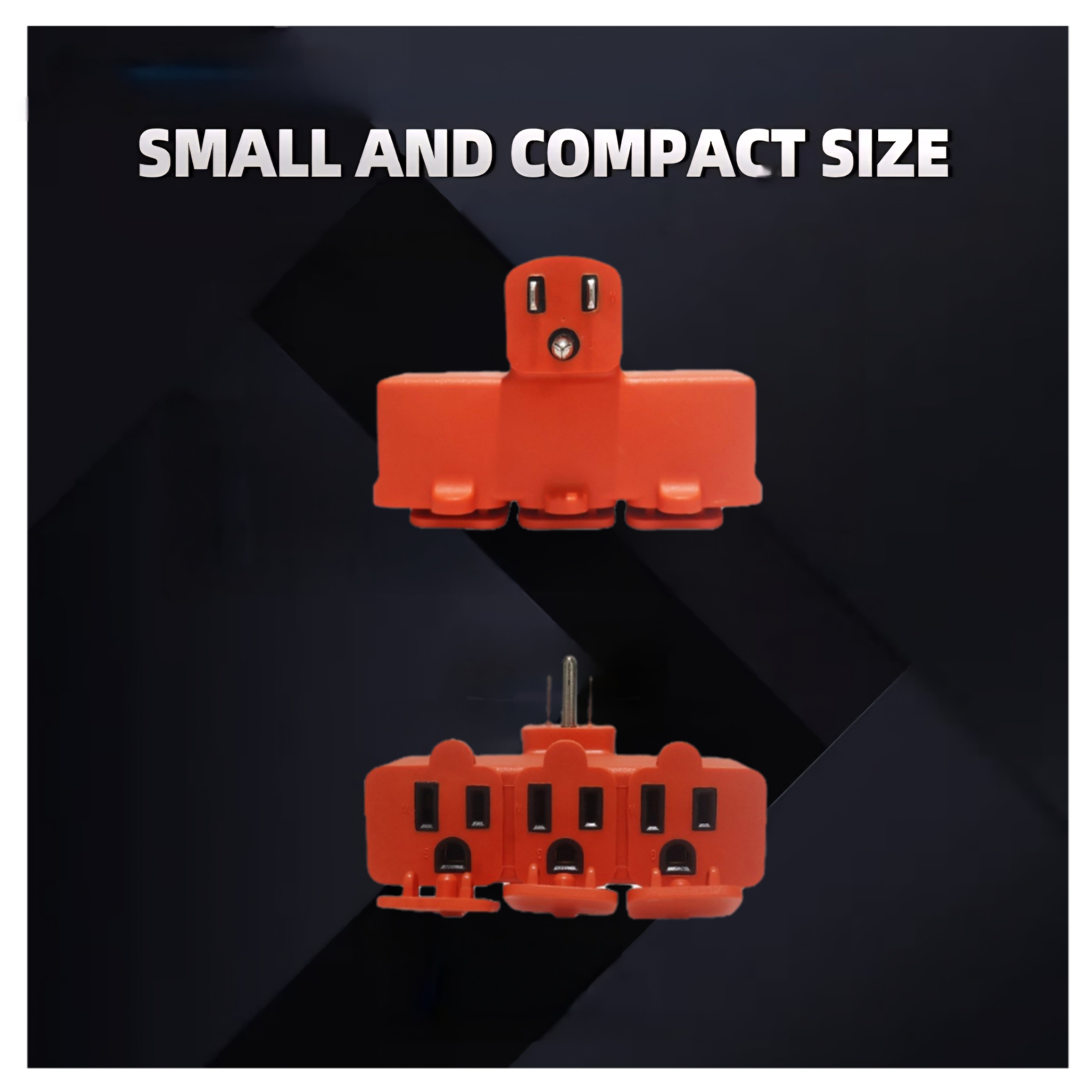 Este adaptador divisor de enchufe de pared de 3 vías de alta resistencia convierte una toma de corriente exterior estándar en tres tomas de corriente con conexión a tierra, lo que puede proporcionar energía hasta a tres dispositivos simultáneamente mediante protección a tierra.