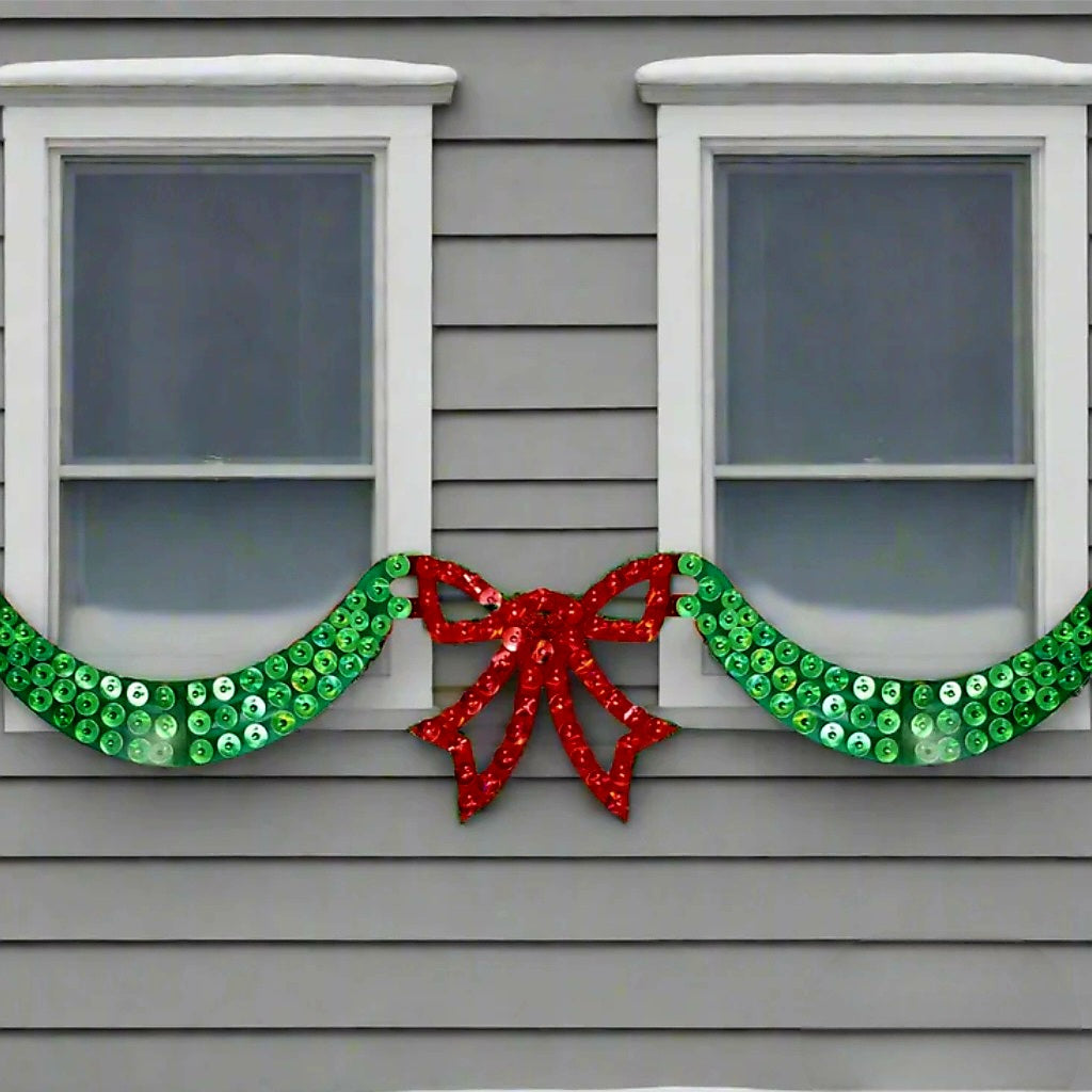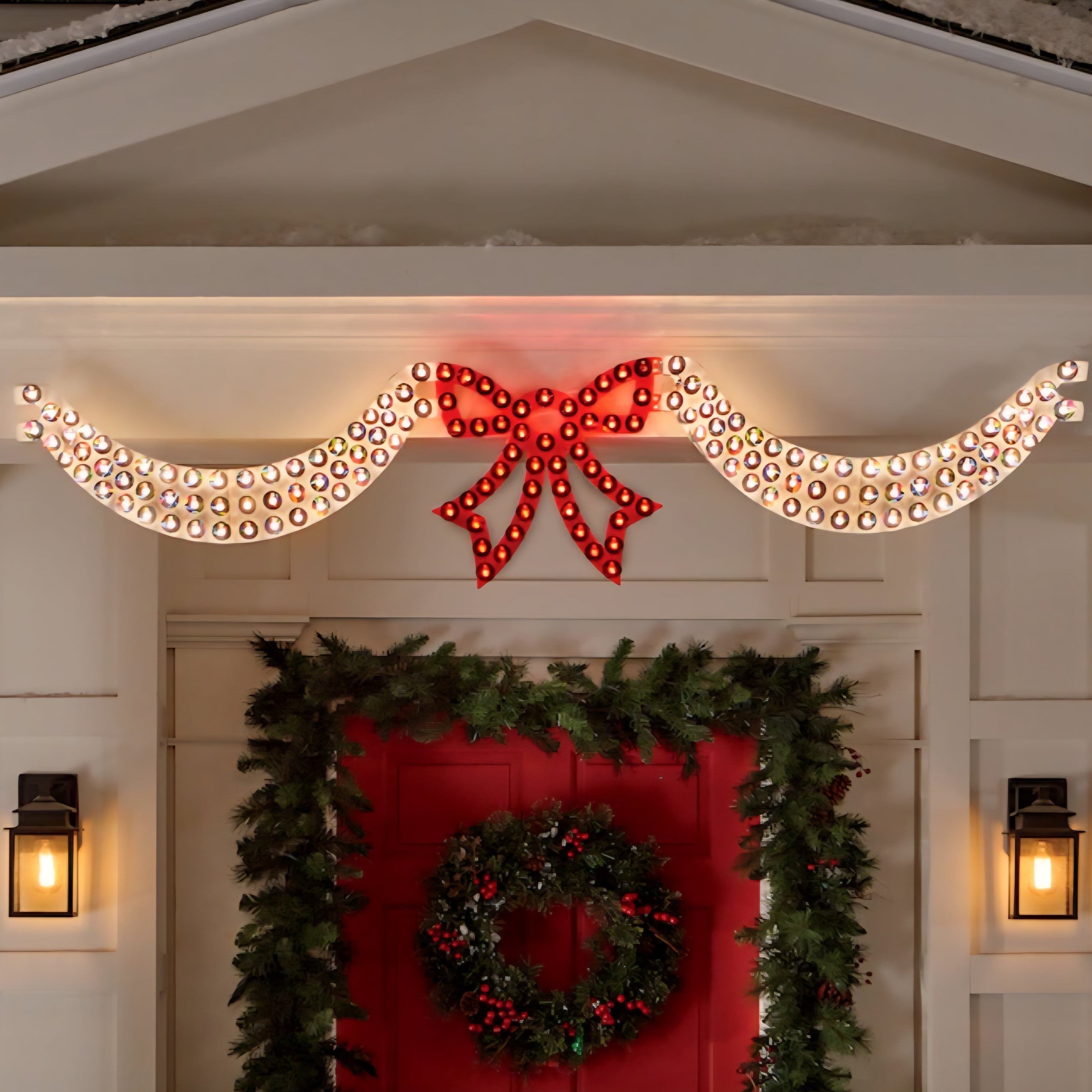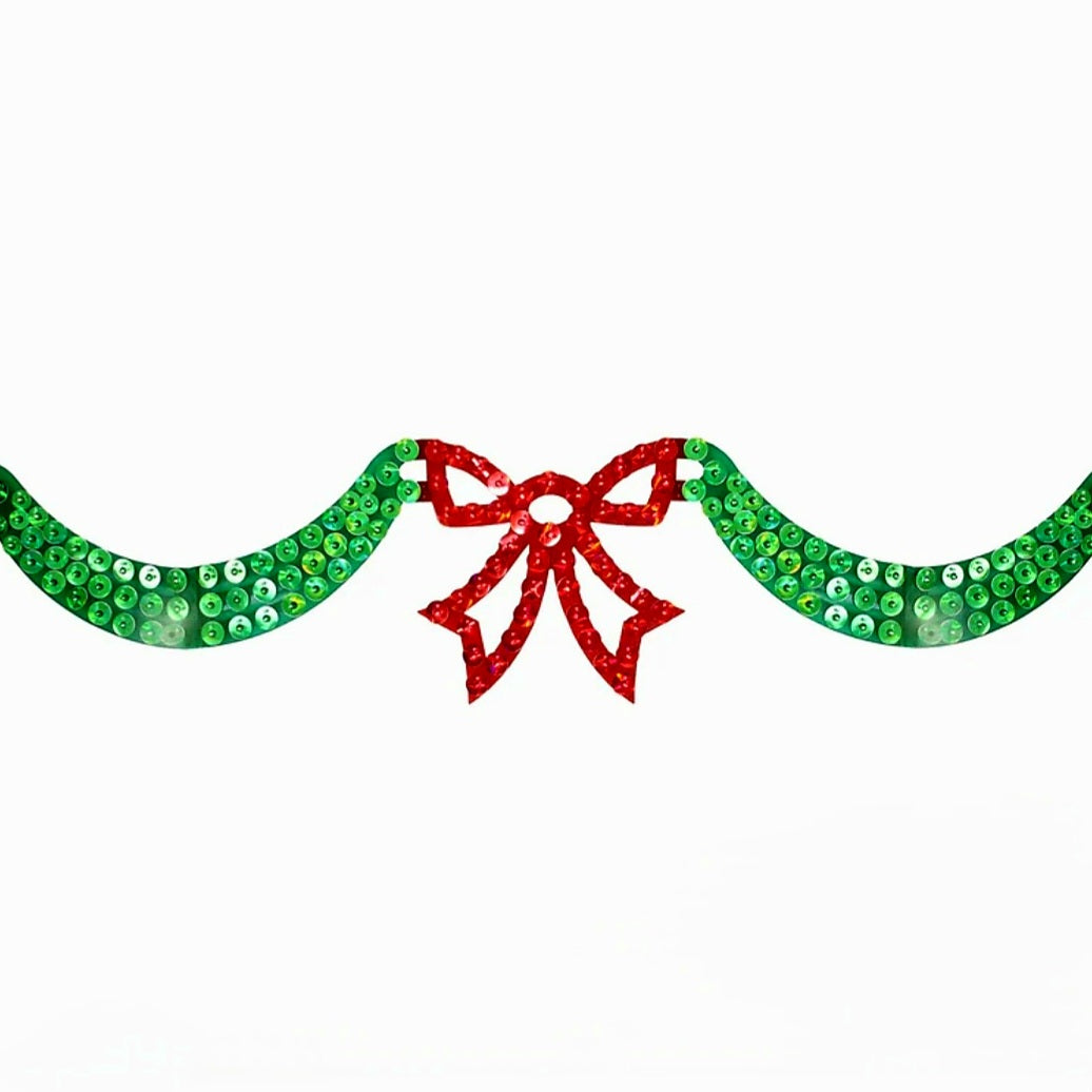 Guirnaldas deslumbrantes con lazo rojo y luces verdes.