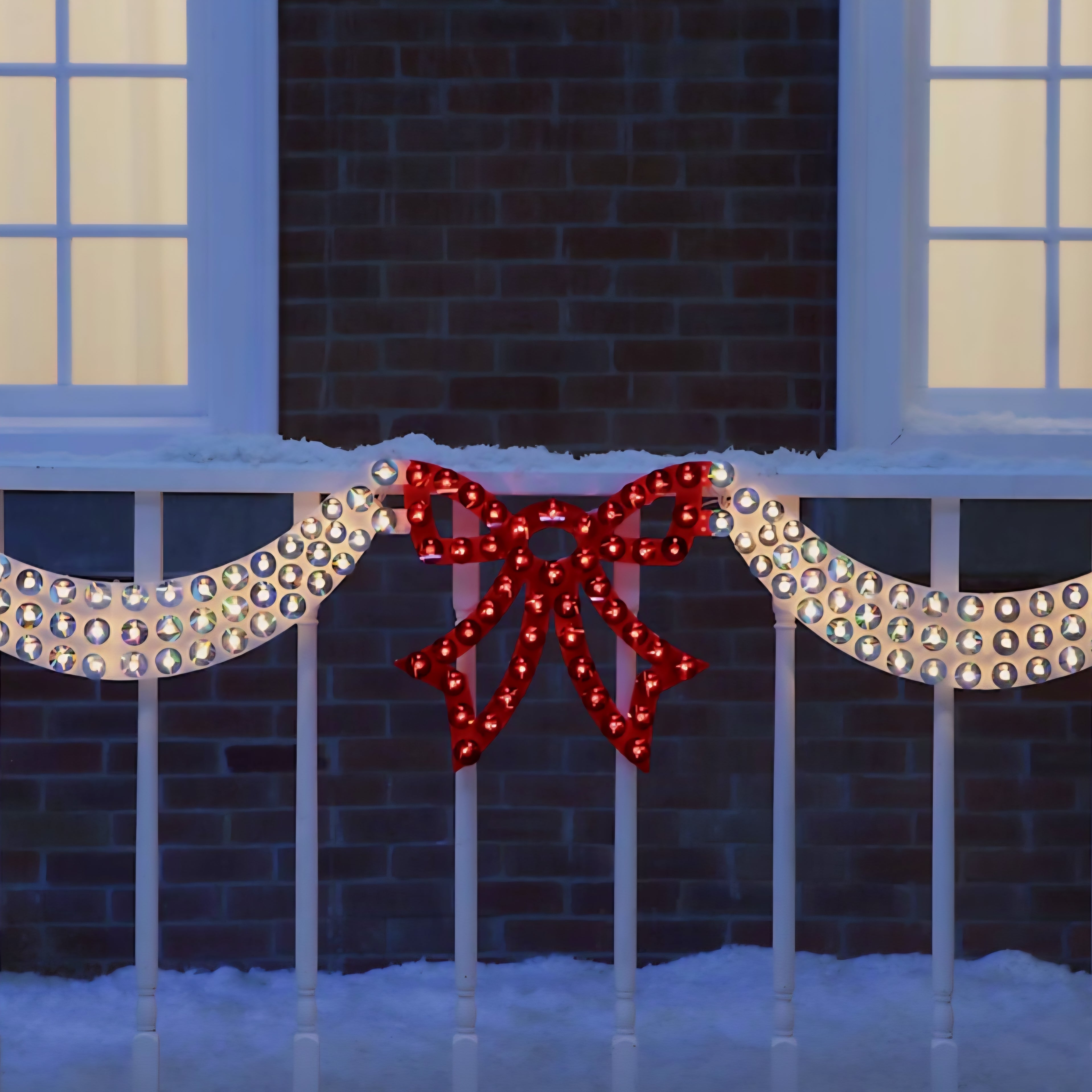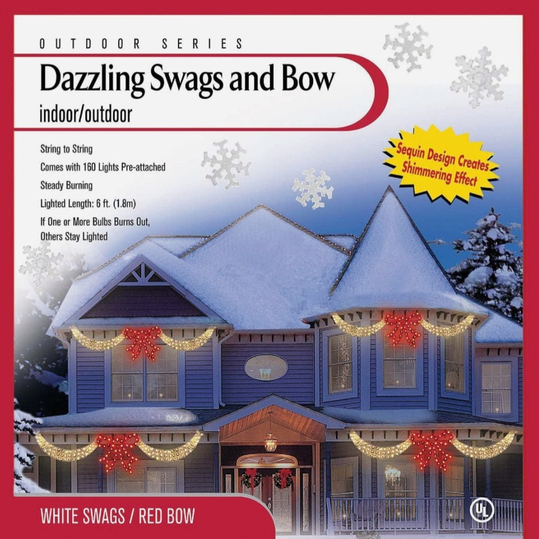 Guirnaldas deslumbrantes con lazo rojo y lucres blancas.