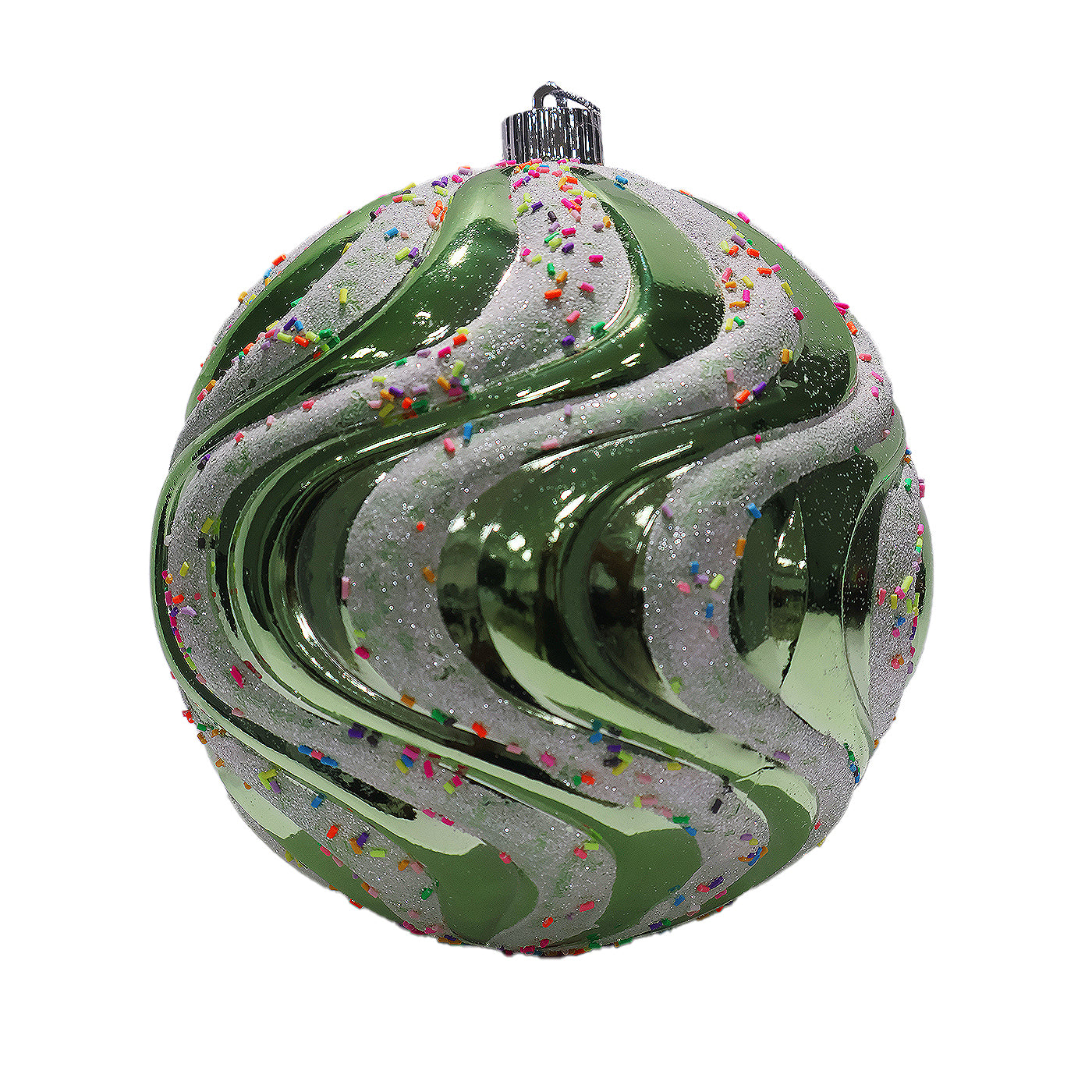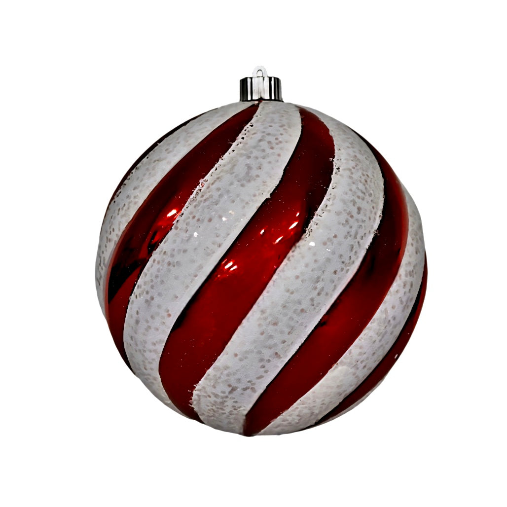 Esferas de Navidad gigantes con patrones en formas de espiral que no son fáciles de romper, cada una mide 8 pulgadas de diámetro y cuentan con colores increíbles de Navidad, un complemento ideal para tu decoración, creando un ambiente festivo.