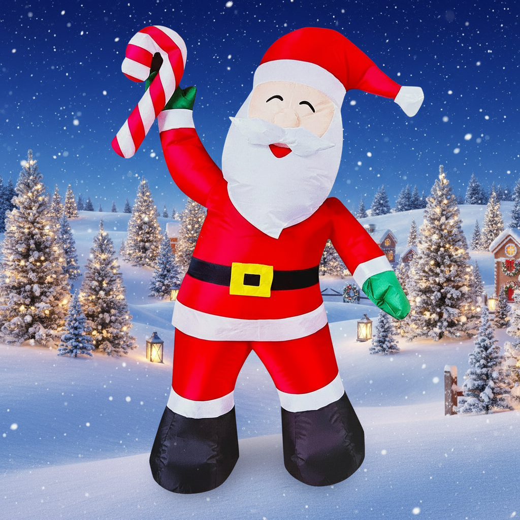 Escoja entre cualquiera de estos 2 inflables iluminados de Santas. Miden 4 Pies de alto y resistentes a todo clima. Trae sus amarres y estacas. Listado UL Para interior o exterior.
