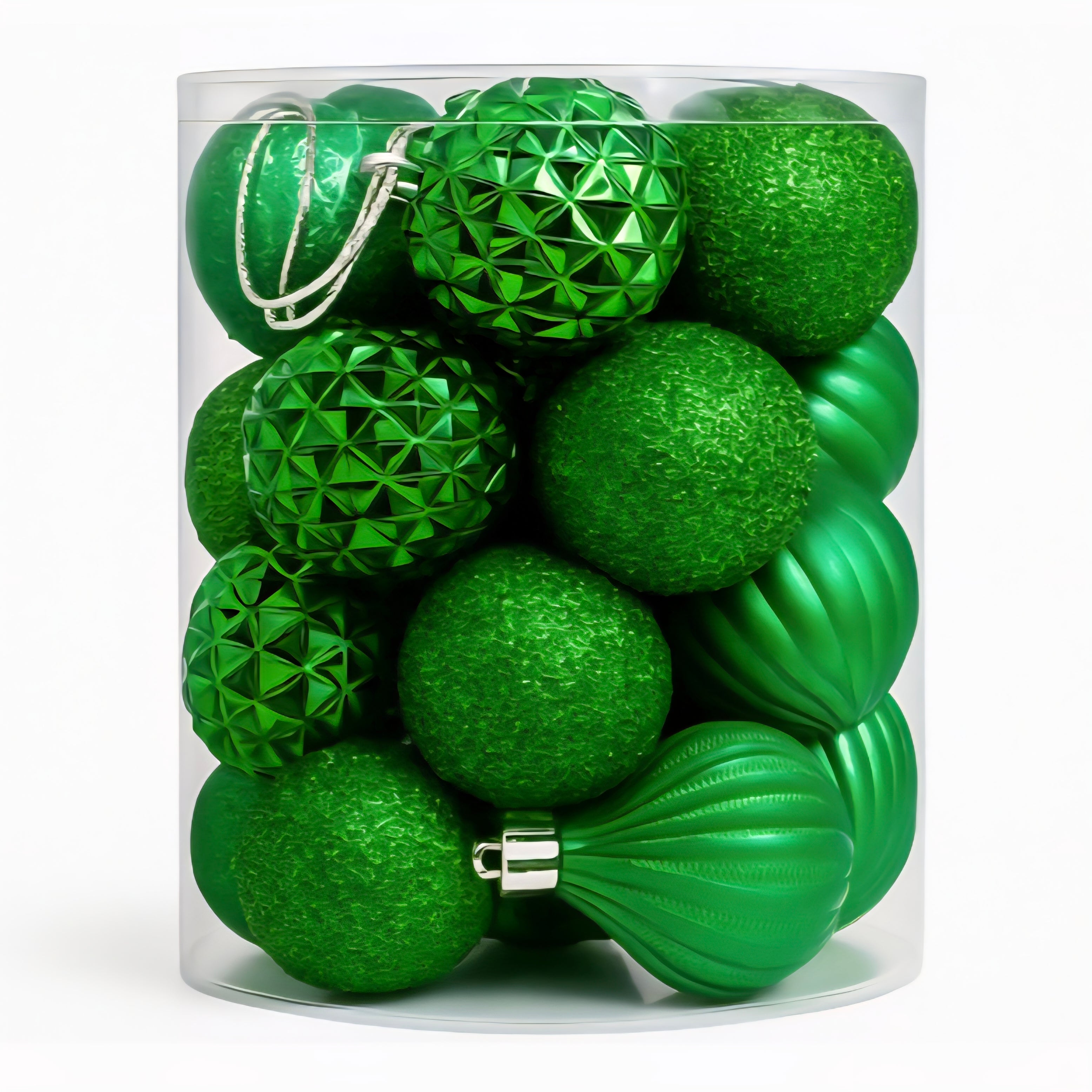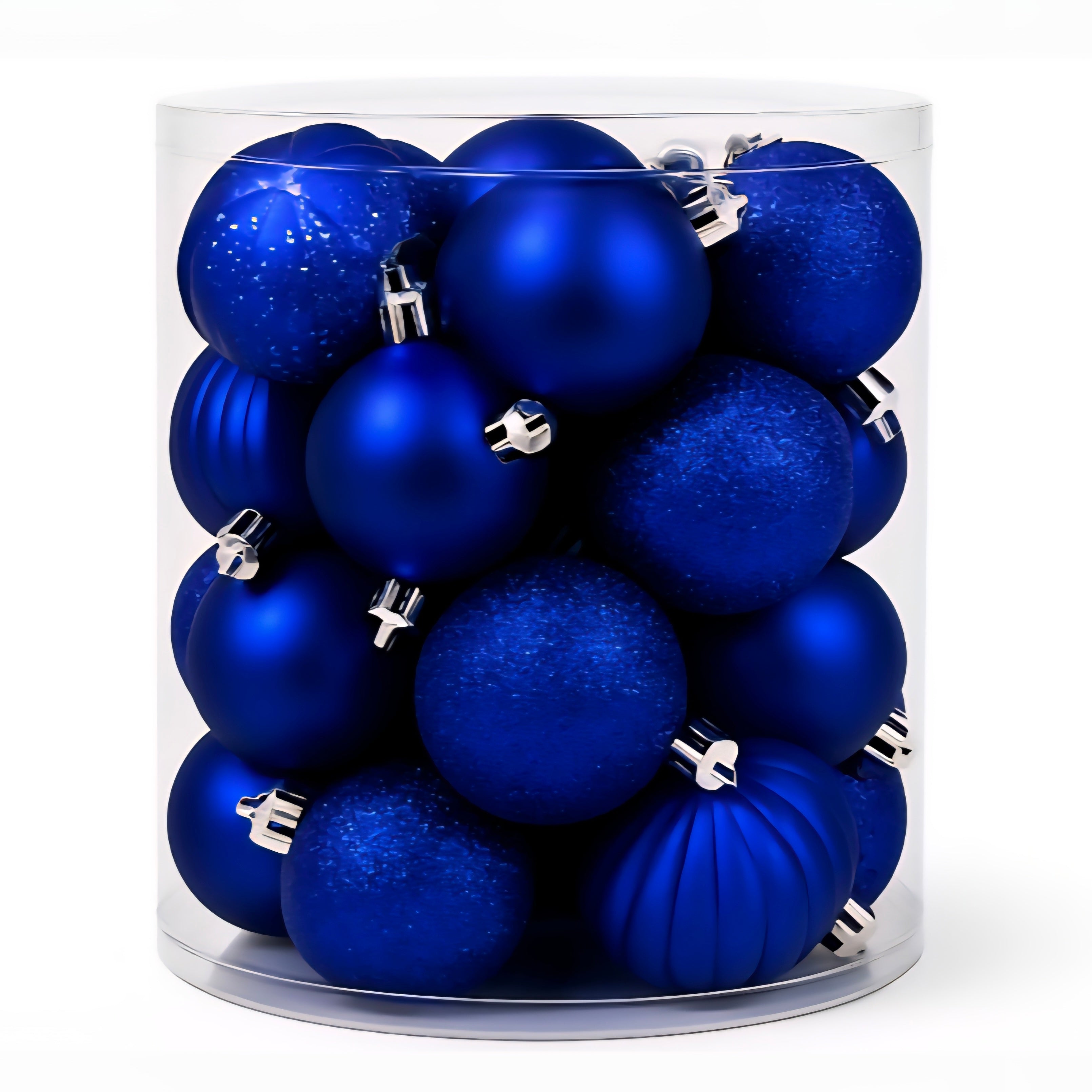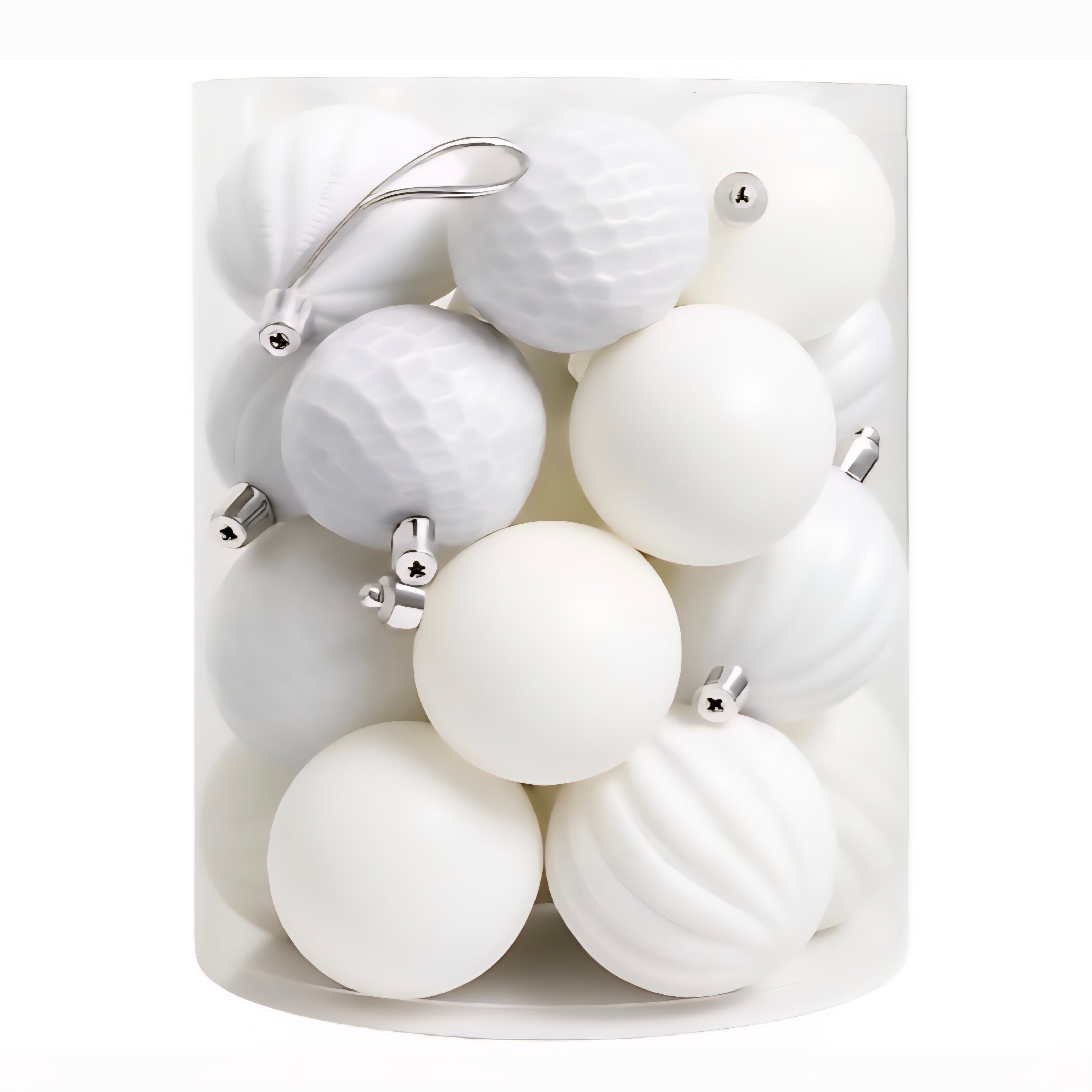 Disfrute de la Navidad con estos adornos de 60 mm. 25 piezas de adornos que vienen en un tubo de PVC para un fácil almacenamiento. Disponible en plata o rojo. La caja contiene: