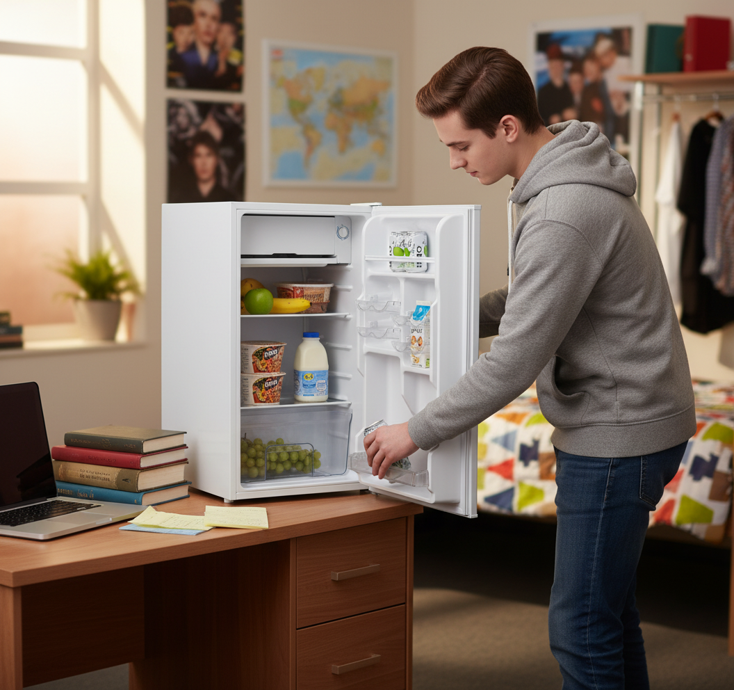 La sección de microcongelación del refrigerador pequeño permite el almacenamiento a corto plazo de una variedad de carnes y está equipada con una bandeja de recogida de agua debajo para facilitar la descongelación o limpieza cuando se corta la energía.