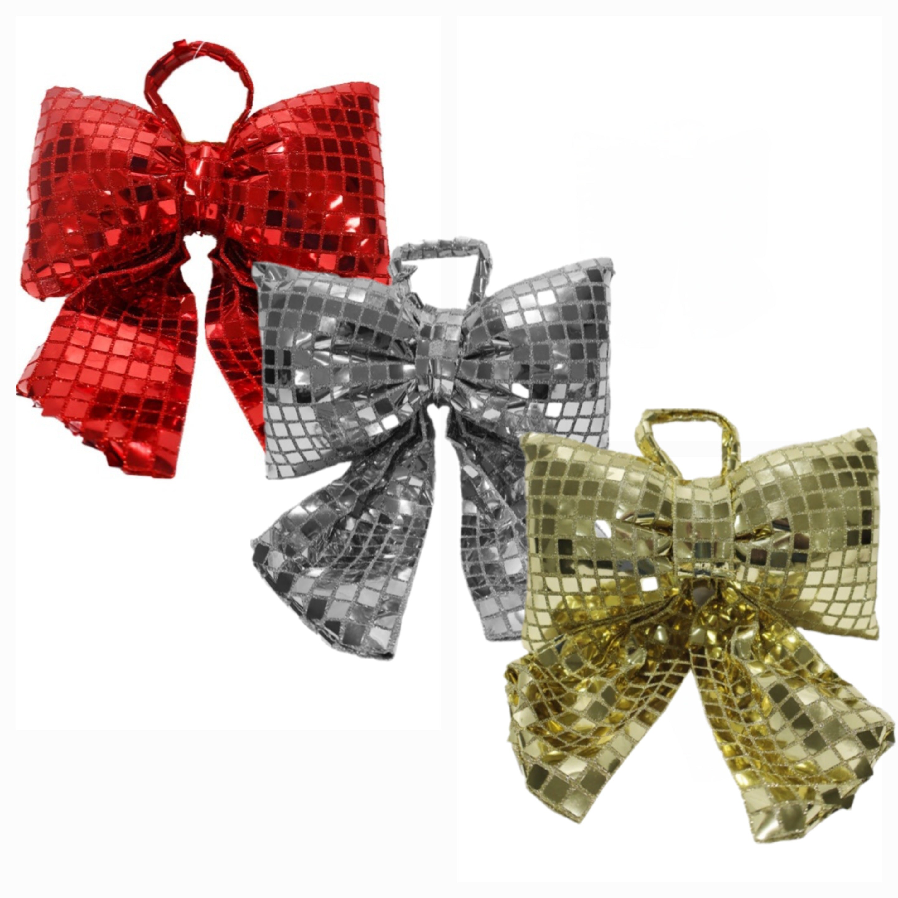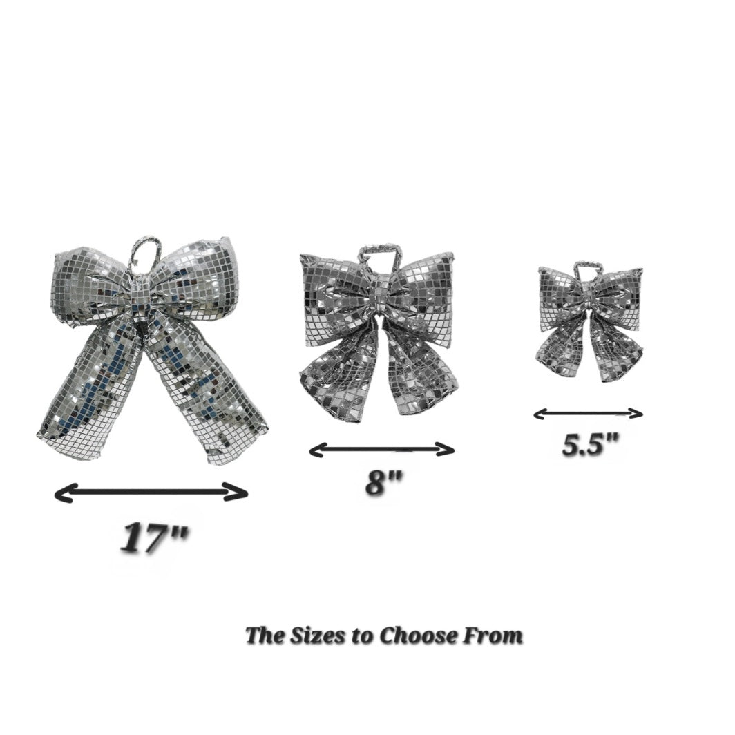 Estos elegantes y deslumbrantes lazos de tamaño mediano están hechos con una tela exquisita que simula cuadros disco. Cada lazo