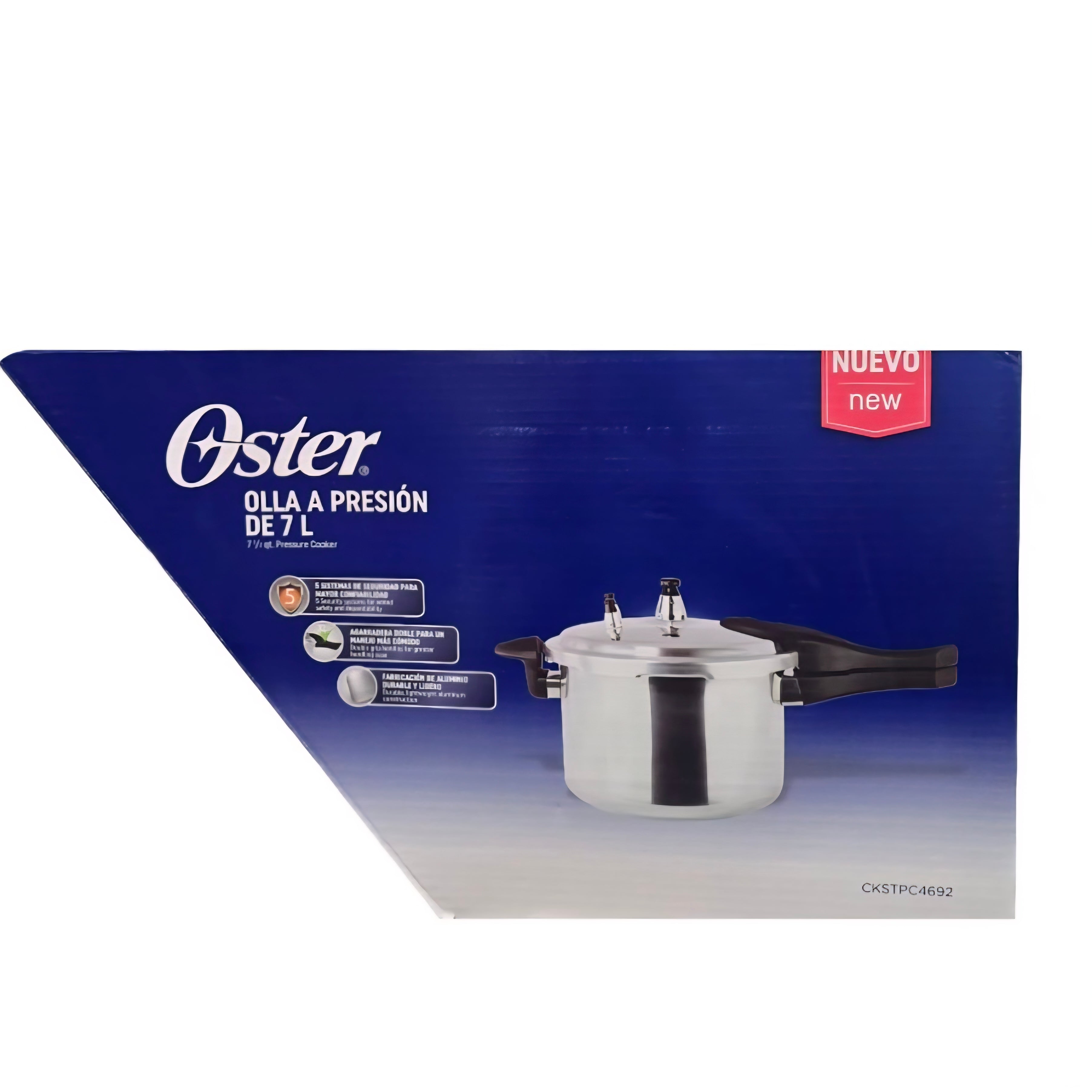 Olla de Presión Oster de 7 litros, cuenta con 5 sistemas de seguridad para mayor confiabilidad del consumidor. Su fabricación es de aluminio durable y ligero para una cocción eficiente. Incluye una tapa hermética con sello grueso y reforzado. Disfruta mientras cocinas con seguridad en nuestra olla de presión.