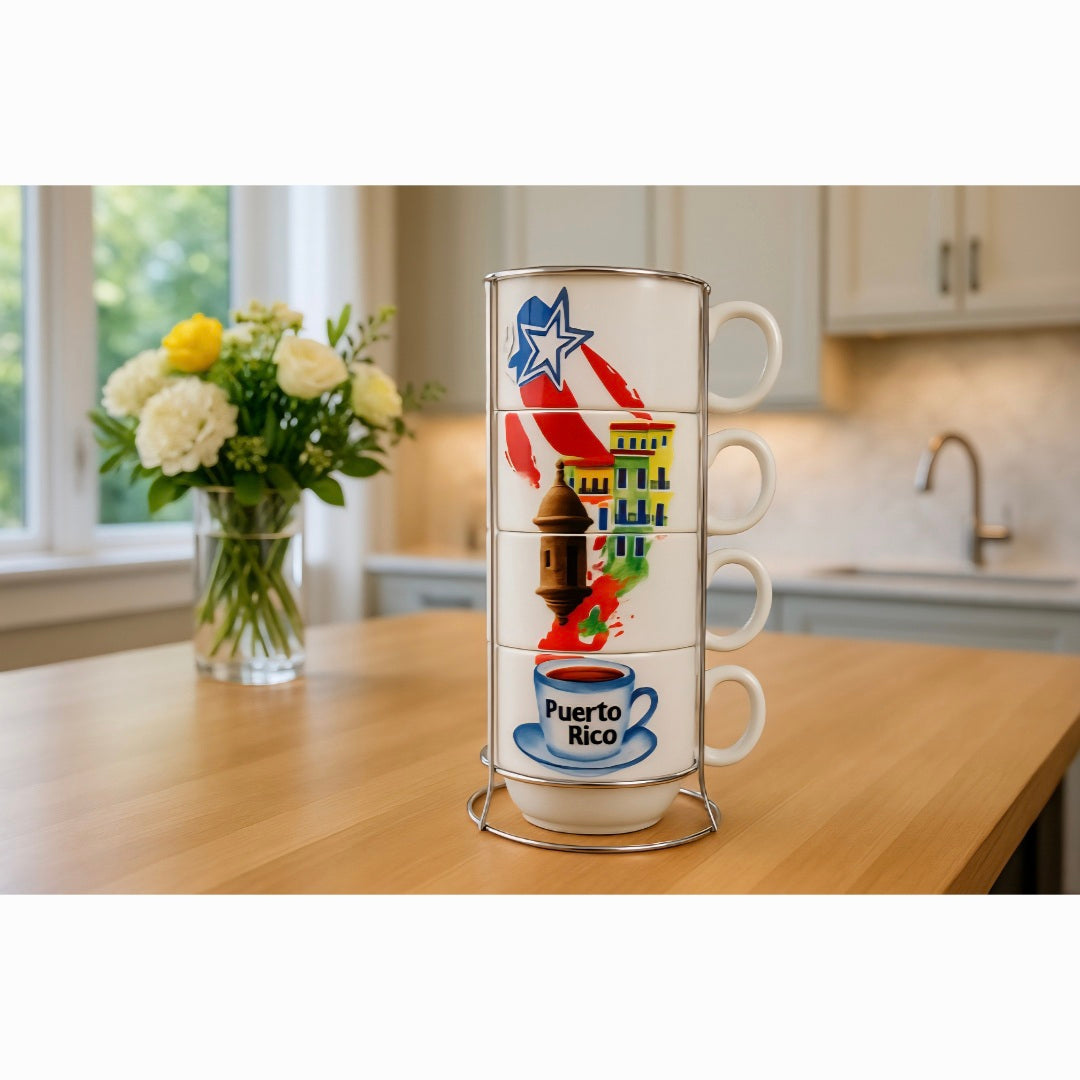 ¿Quién quiere café con estilo? Este hermoso conjunto contiene un conjunto de 4 tazas impresas con imágenes de Puerto Rico, ¡Un conjunto de regalo que será apreciado por todos!
