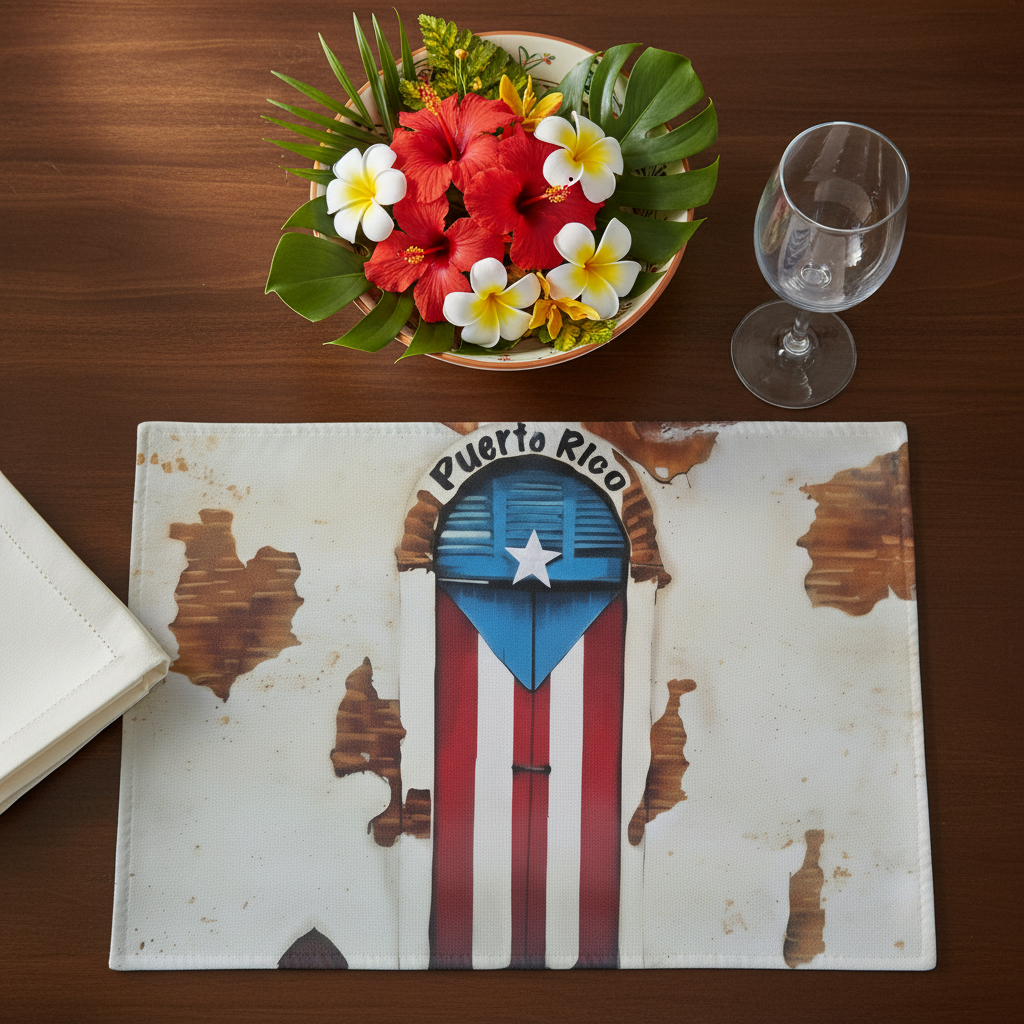 No hay mejor regalo para tus seres queridos que regalar un pequeño pedazo de Puerto Rico a través de este set de 4 piezas de placemats. El set presenta La Puerta del Viejo San Juan con el diseño de la bandera de Puerto Rico.