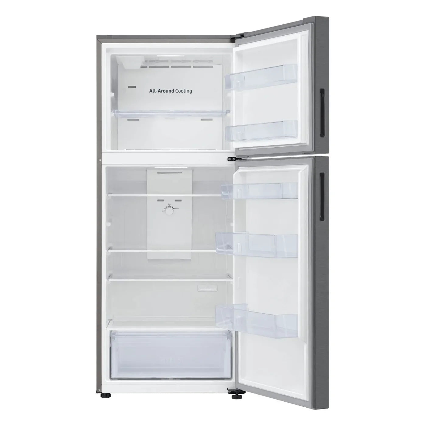 La nevera Samsung es una compacta con congelador superior que combina eficiencia, diseño moderno y organización inteligente. Con una capacidad de 15.6 pies cúbicos, es ideal para apartamentos, condominios o cocinas secundarias sin comprometer el rendimiento.
