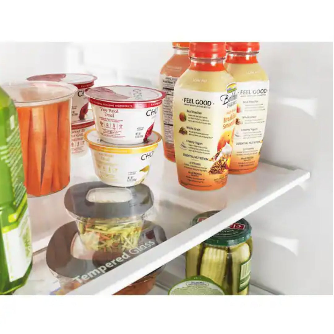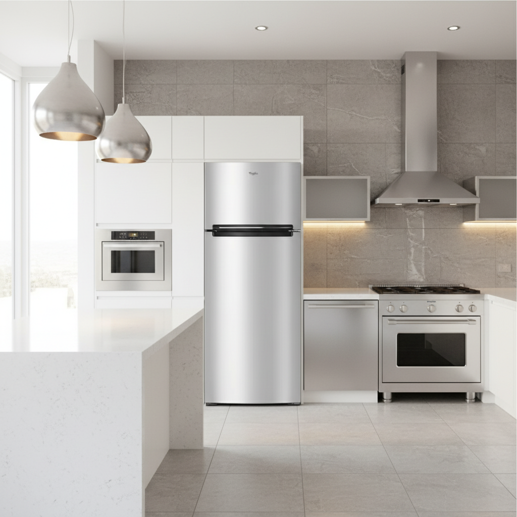 Este refrigerador de 28" con congelador superior ofrece una capacidad de 18 pies cúbicos con opciones de almacenamiento más convenientes gracias al compartimento Flexi-Slide que se ajusta para hacer espacio para artículos altos. La iluminación interior LED brillante proporciona una luz más natural sobre el contenido de su refrigerador con congelador superior en negro, blanco o acero inoxidable, haciendo que los alimentos se vean como deben. Además, puede acceder fácilmente al hielo agregando el kit de fábrica de hielo Whirlpool EZ Connect.