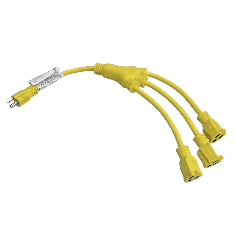 The cable will bifurcate into 3 separate wires, each with its own connector. Ideal for powering multiple adapters. It makes cord routing easier because it keeps the outlets from getting too crowded.