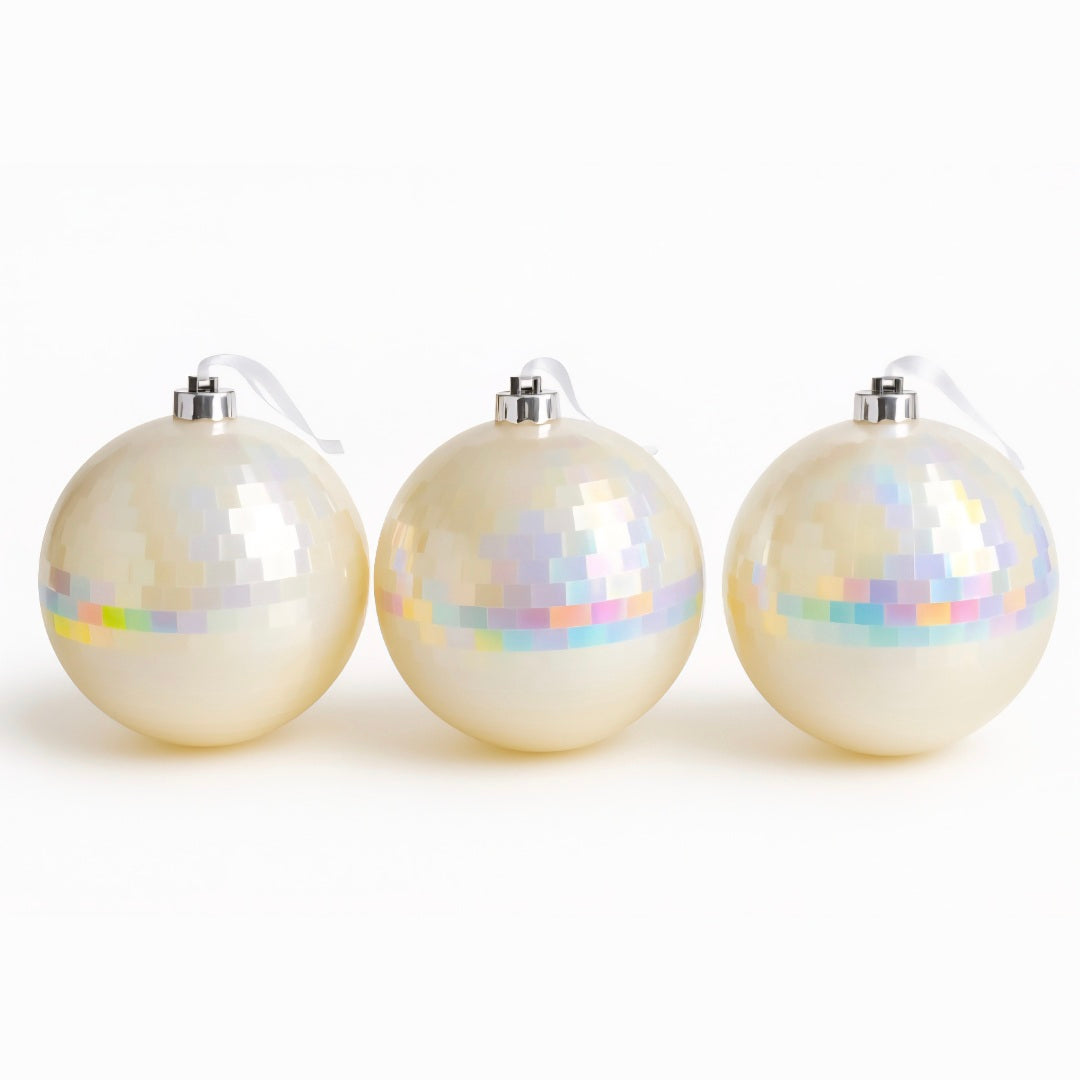 Enjoy Christmas with these gorgeous 150mm iridescent ornaments. Three (3) pieces ornaments that come in a clear plastic box for easy storage.
