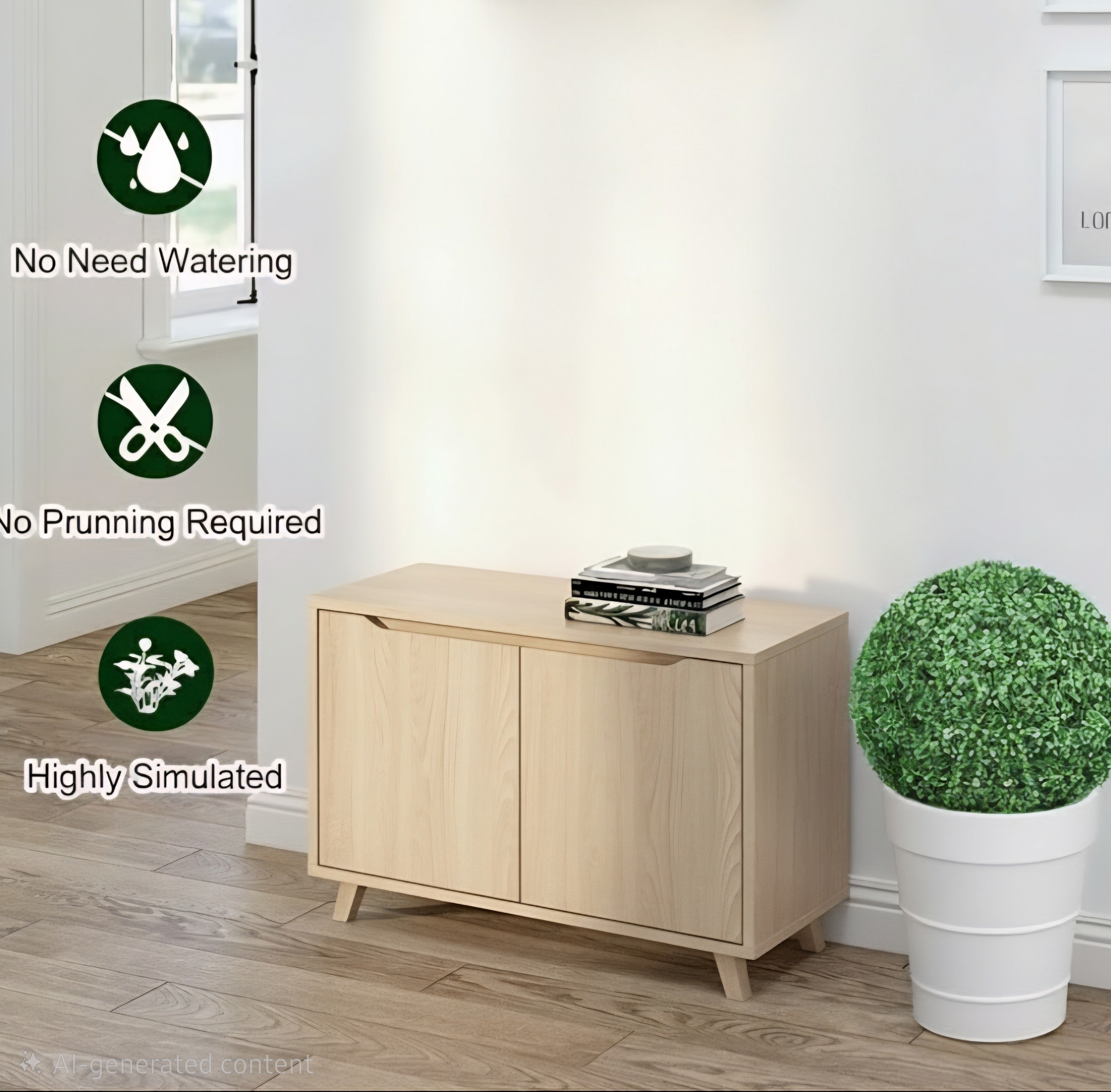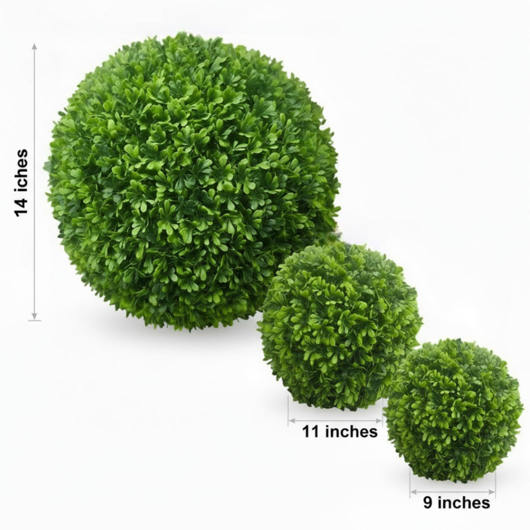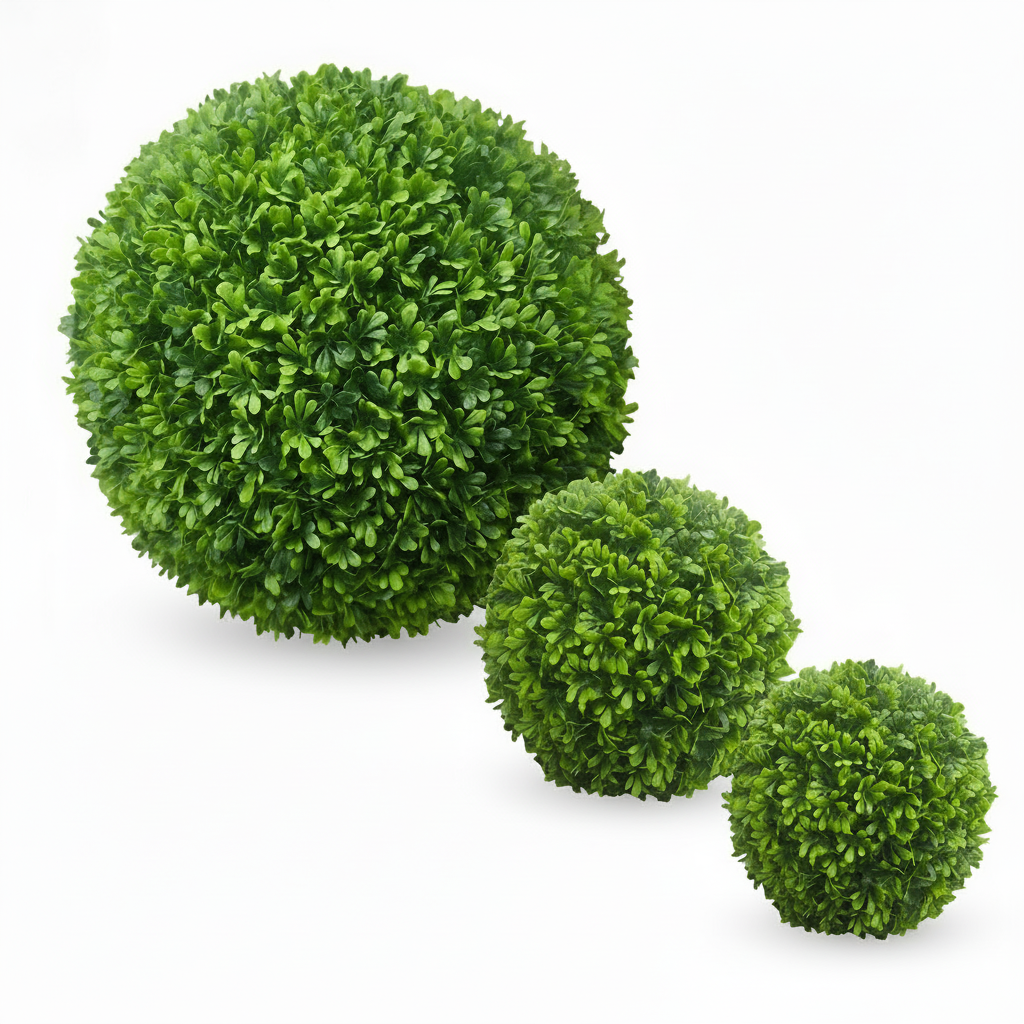 Topiary balls are artificial plants made of good quality plastic that are easy to maintain, without the hassle of watering and pruning. With 4 layers of foliage that mimic real boxwood, boxwood balls look natural, seamless and lifelike. Just dust them off or rinse them with water from time to time to keep them fresh and vibrant.
