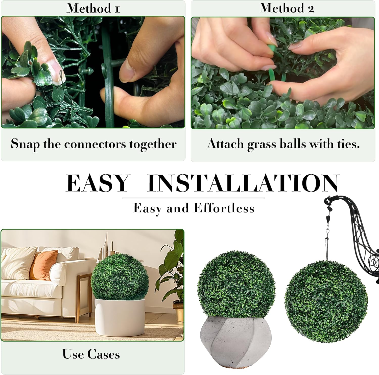 One topiary ball comes in 2 halves. The two halves can be easily joined together with a snap and securely fastened with extra zip ties.