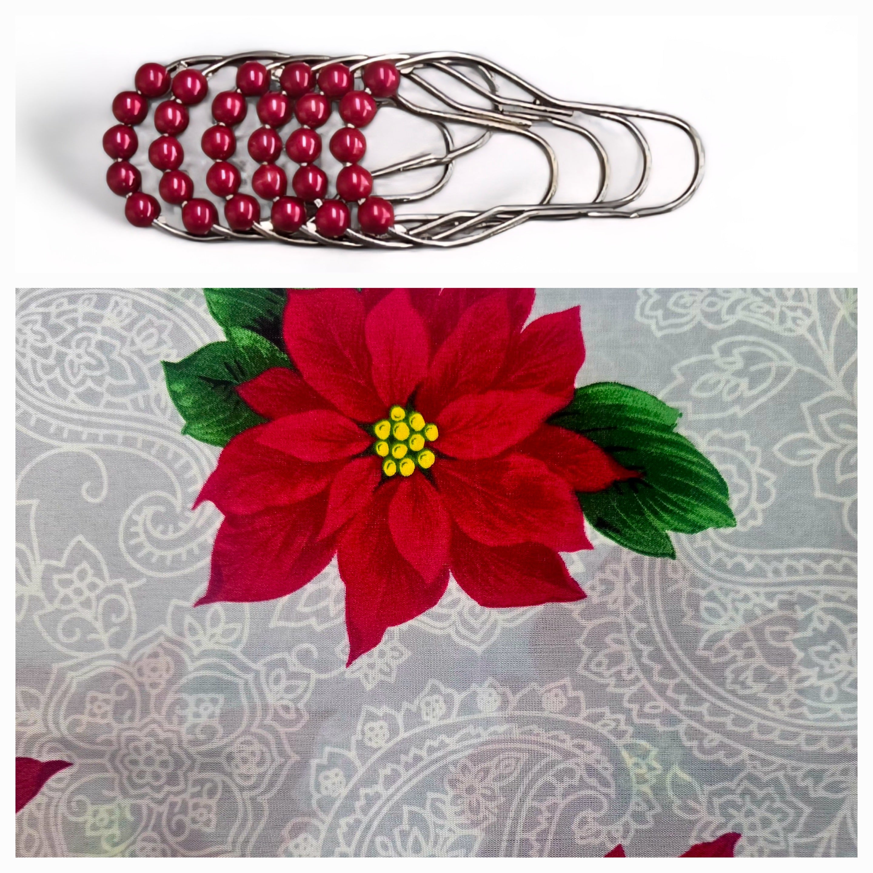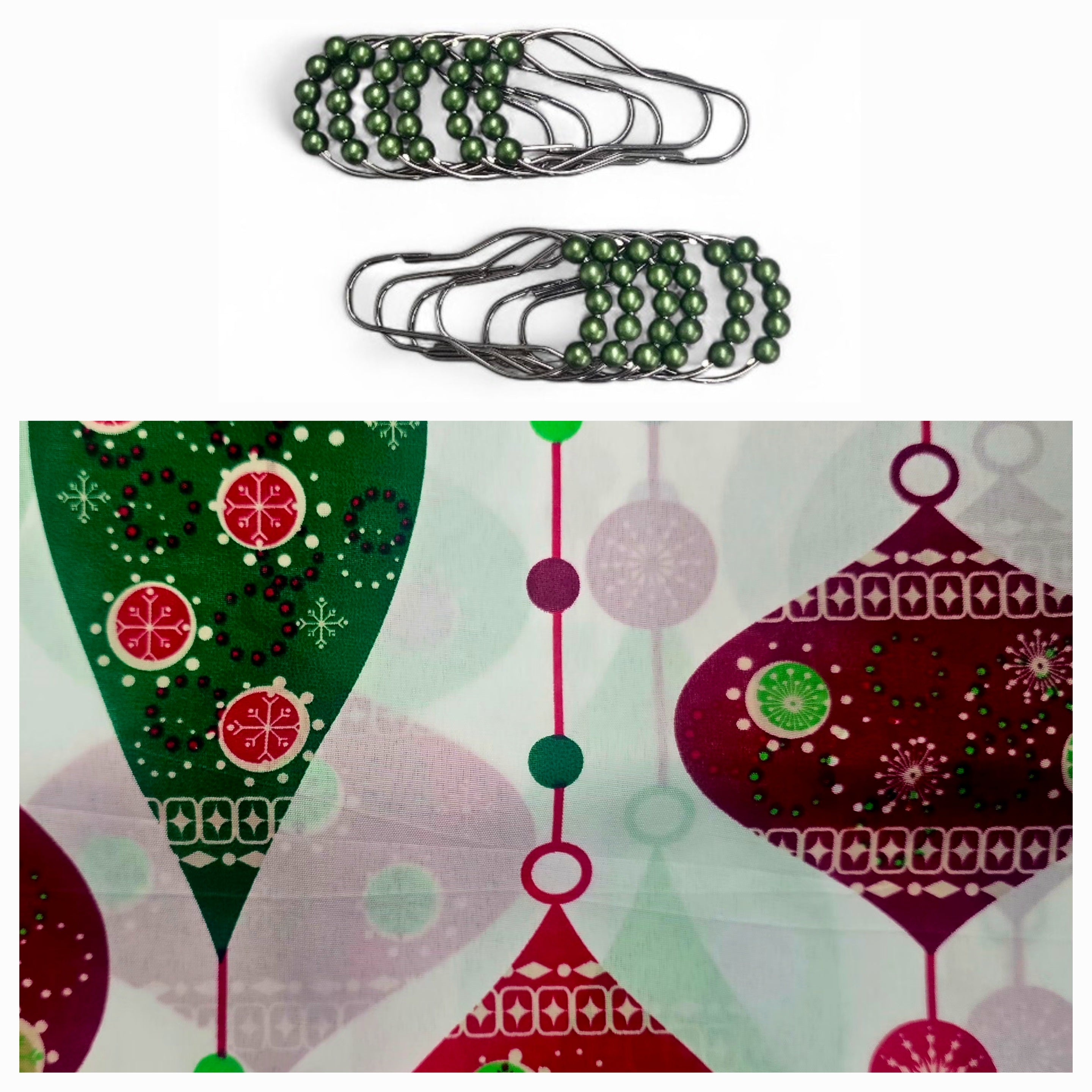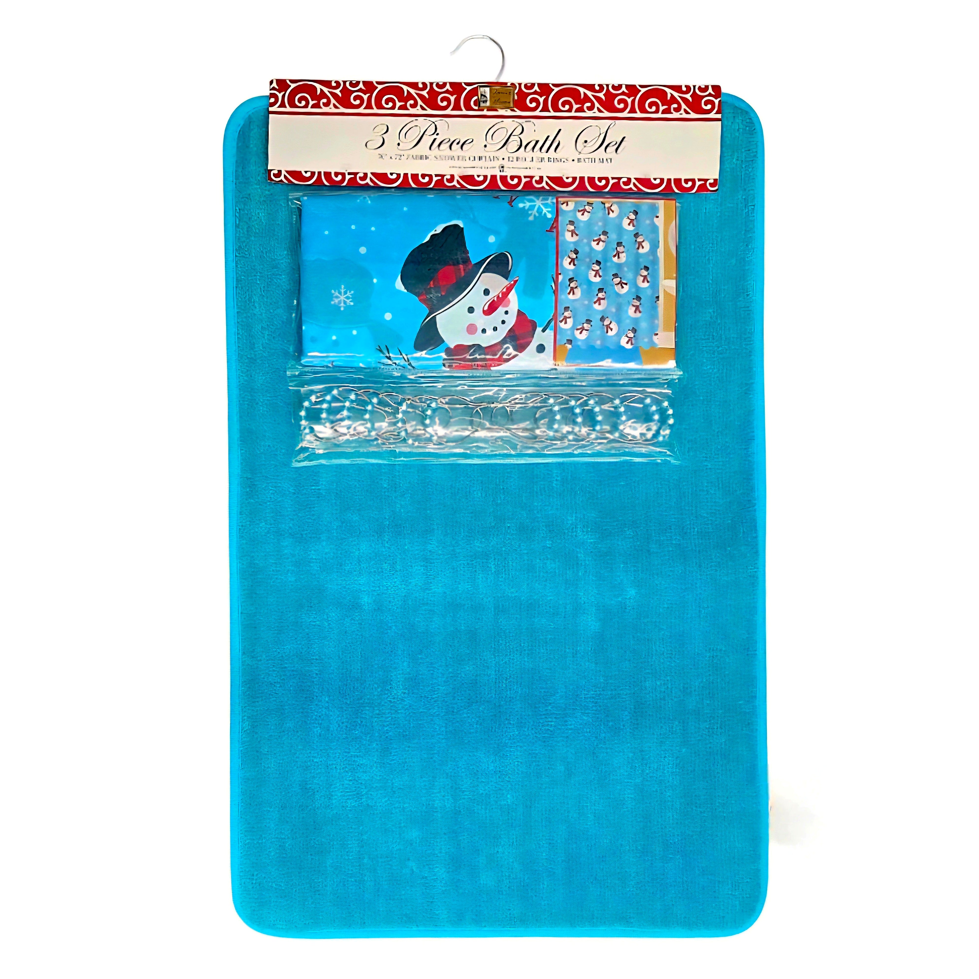 3-piece set includes: shower curtain, 12 hooks and bathroom rug.