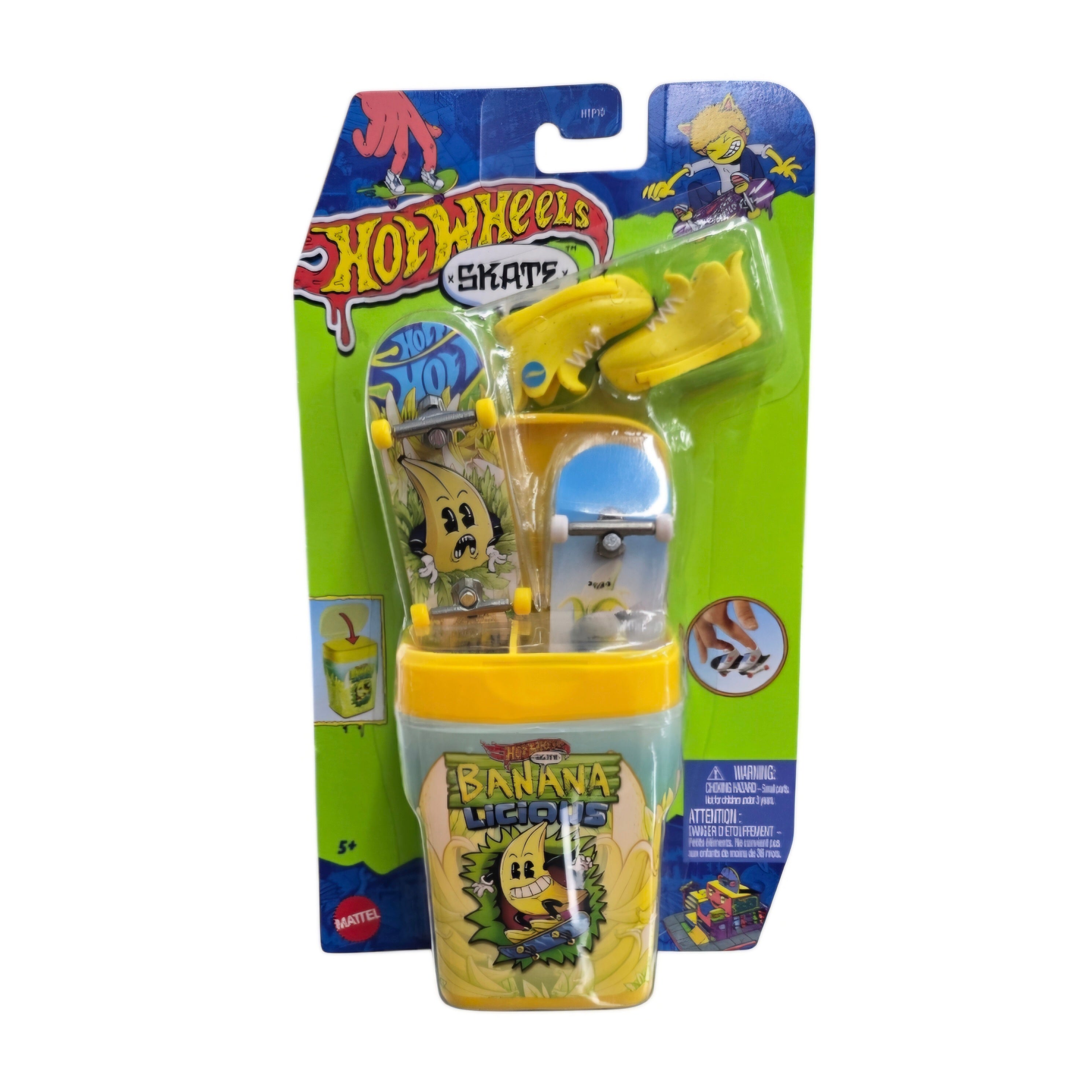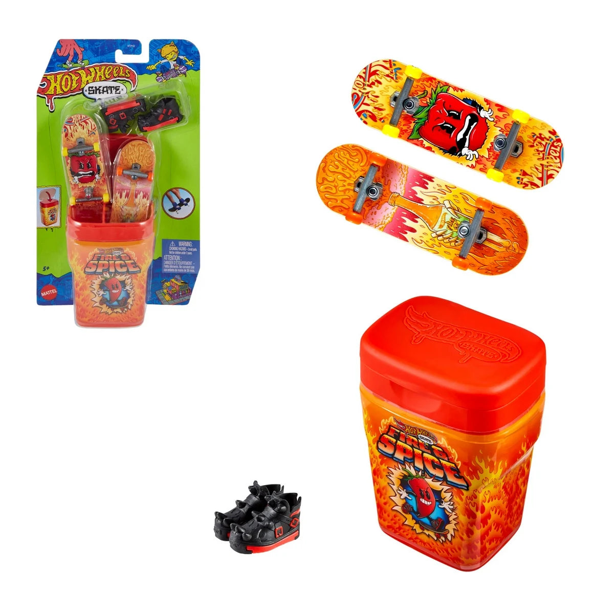 Take boards on the go with the Hot Wheels Skate Flavor Container that holds and hides 2 fully assembled fingerboards and a pair of skate shoes in a chewing gum-like container! Pop opens a 'flavor' that's decorated with sweet graphics and resembles packs of gum. Inside, there are 2 exclusive boards and a pair of removable skate shoes with matching graphics and colors. These compact containers make it easy and cool to skate anywhere! With multiple 'flavors' available, skate fans will want to collect them all.