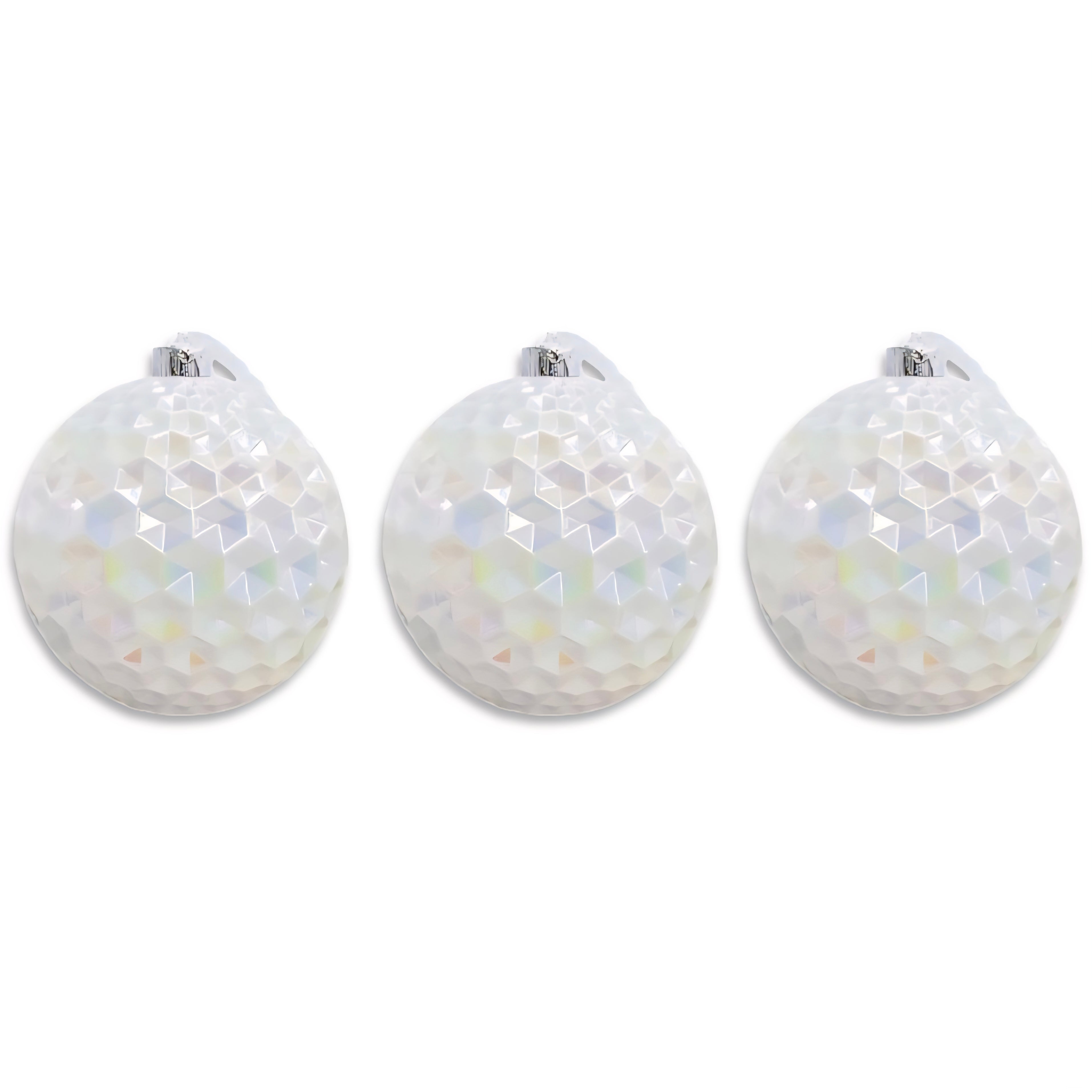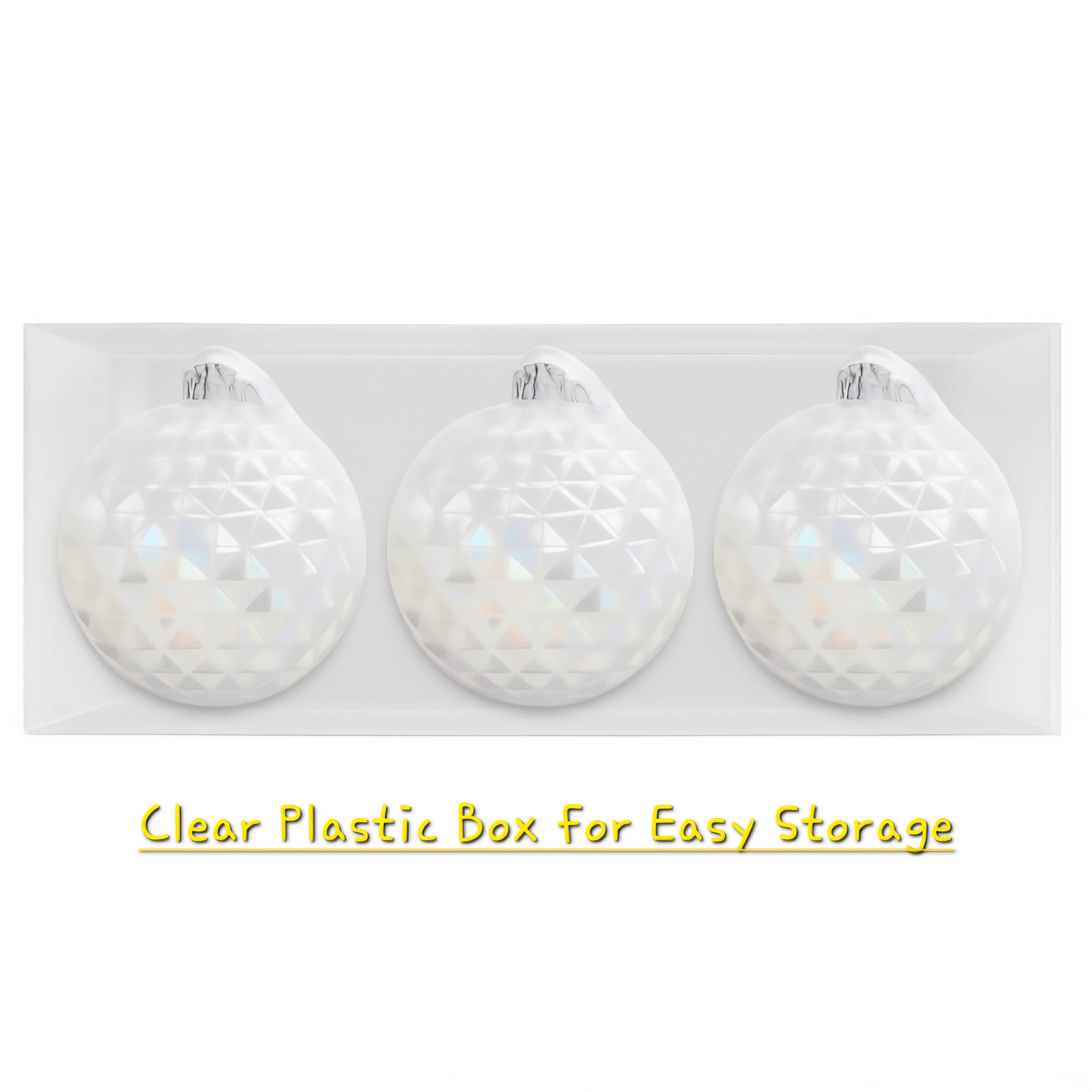 Enjoy Christmas with these gorgeous 150mm iridescent diamond shape cover ornaments.  Three (3) pieces ornaments that come in a clear plastic box for easy storage.