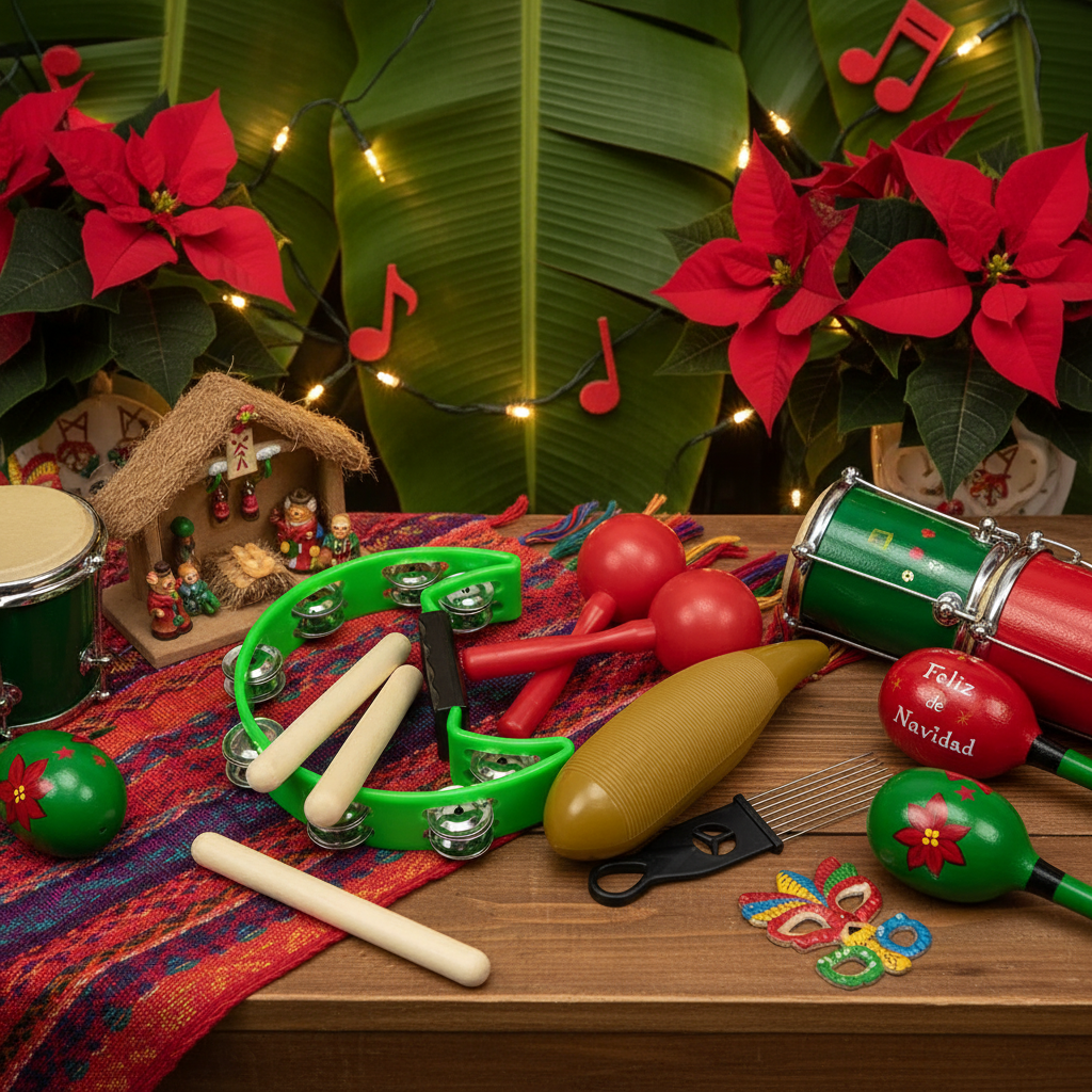 Enjoy Christmas season and Puerto Rican tradition, with this "Parrandero Kit". A set of 5 plastic percussion instruments such as: