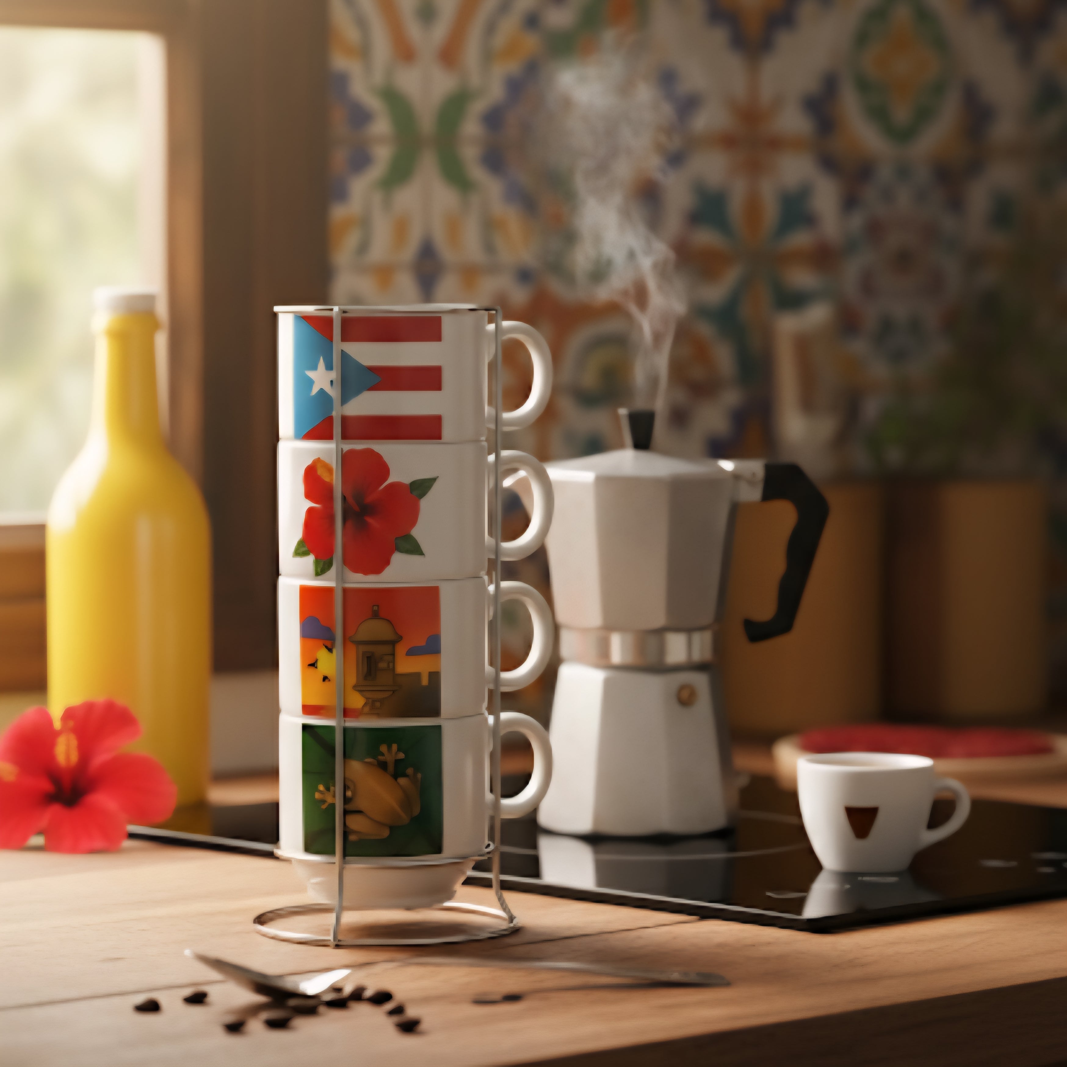 Who wants coffee in style? This beautiful set contains 4 printed coffee mugs with images of Puerto Rico, a gift set that will be appreciated by all!