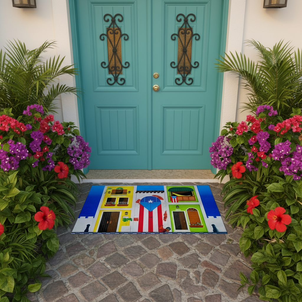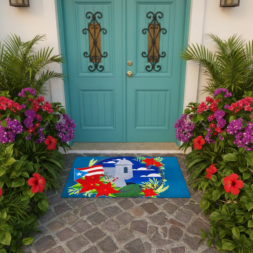 Fun and cheerful door mats with Puerto Rico's emblems designs, such as the Three Wise Men, Old San Juan Door and the Garita del Morro. These non-slip floor mats will be the highlight of your home decor. Made of 100% Polyester, the facecloth fabric is soft, colorful and warm, 15.2 x 23-inch size. The non-slip backing made of sturdy rubber, provides excellent footing and non-slip functionality.