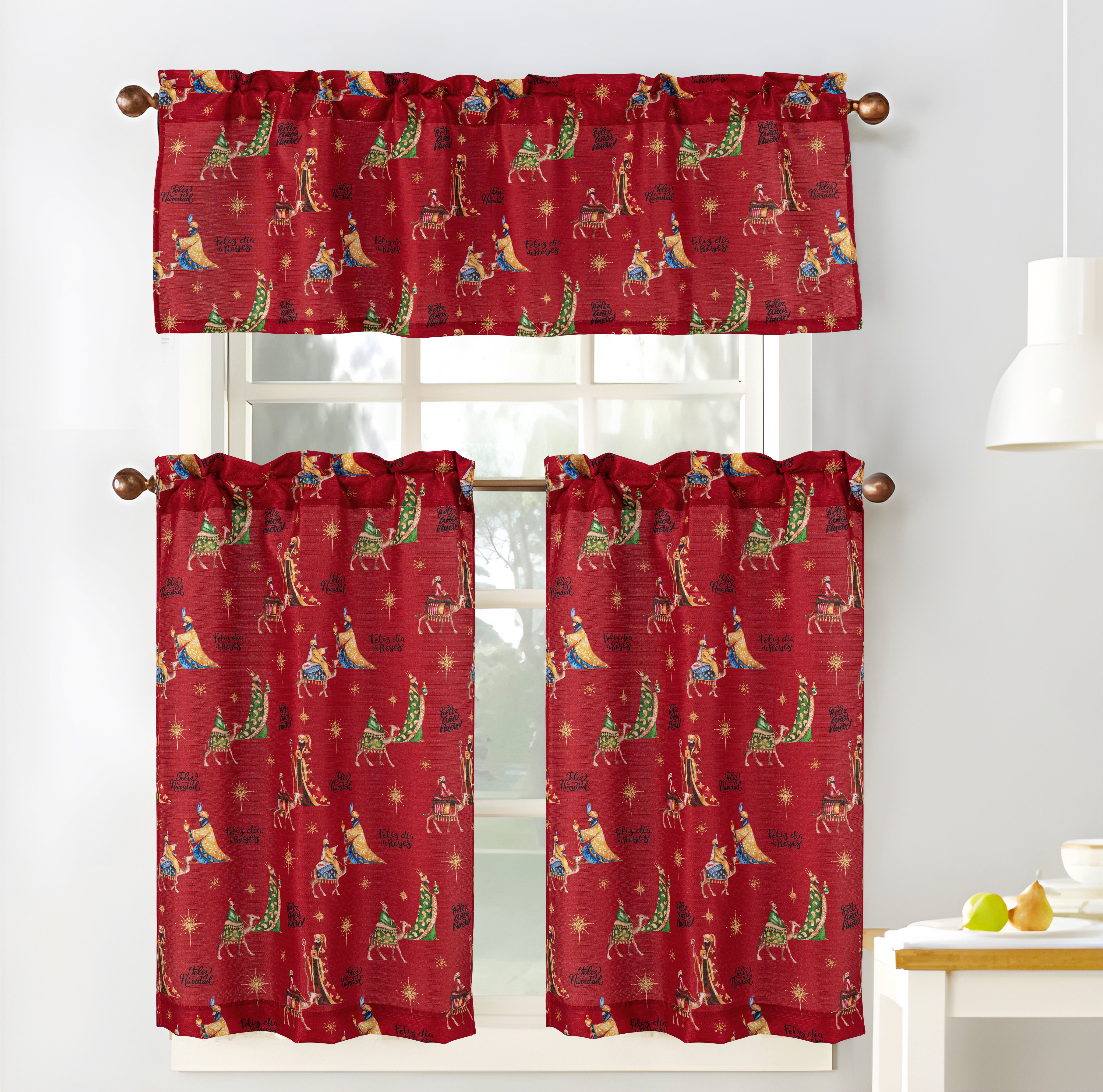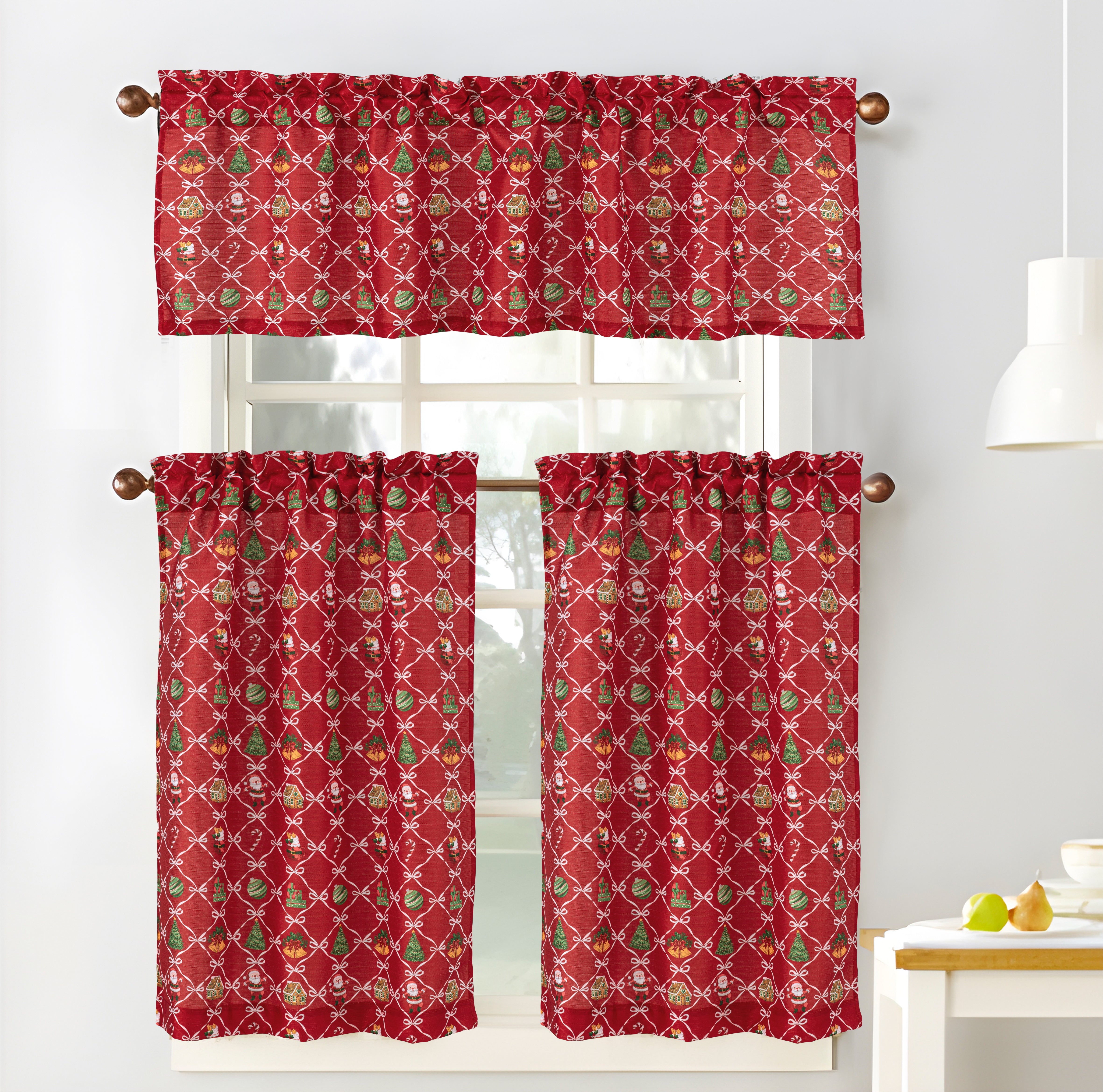 Your kitchen will look festive and in tone with the Christmas spirit, with these beautiful Kitchen 3PC curtains: 2 panels and 1 Valance. Printed curtains made of a soft 100% polyester fabric.
