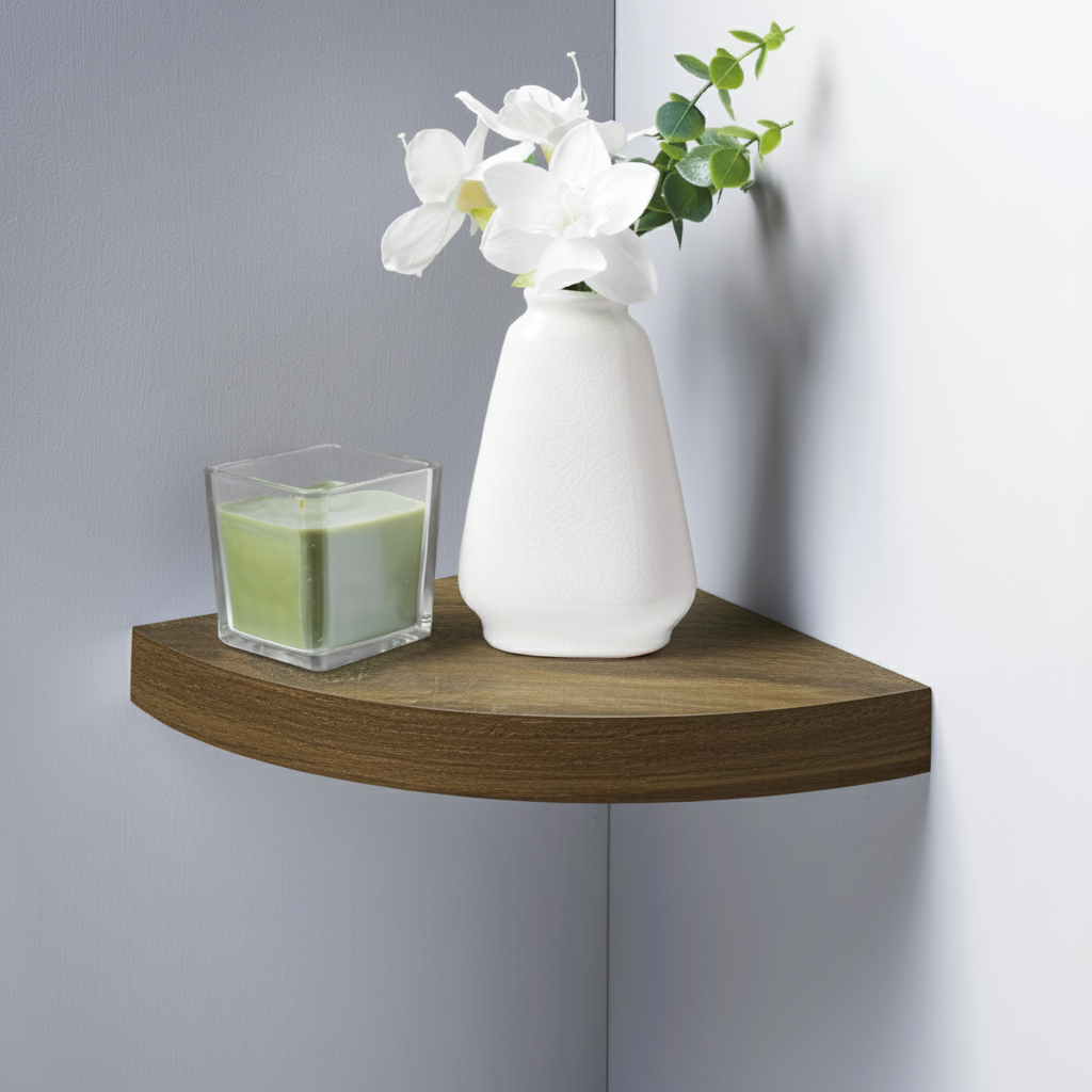 The corner floating shelf is created entirely of gorgeous, pressed wood. Supported by an upgraded mounting bracket, strong enough to load.